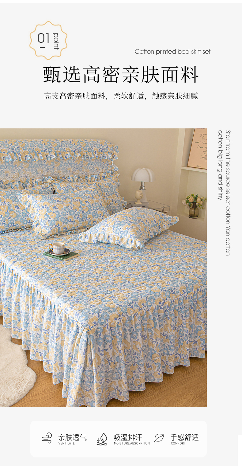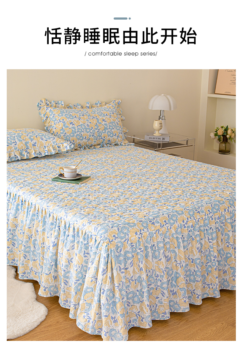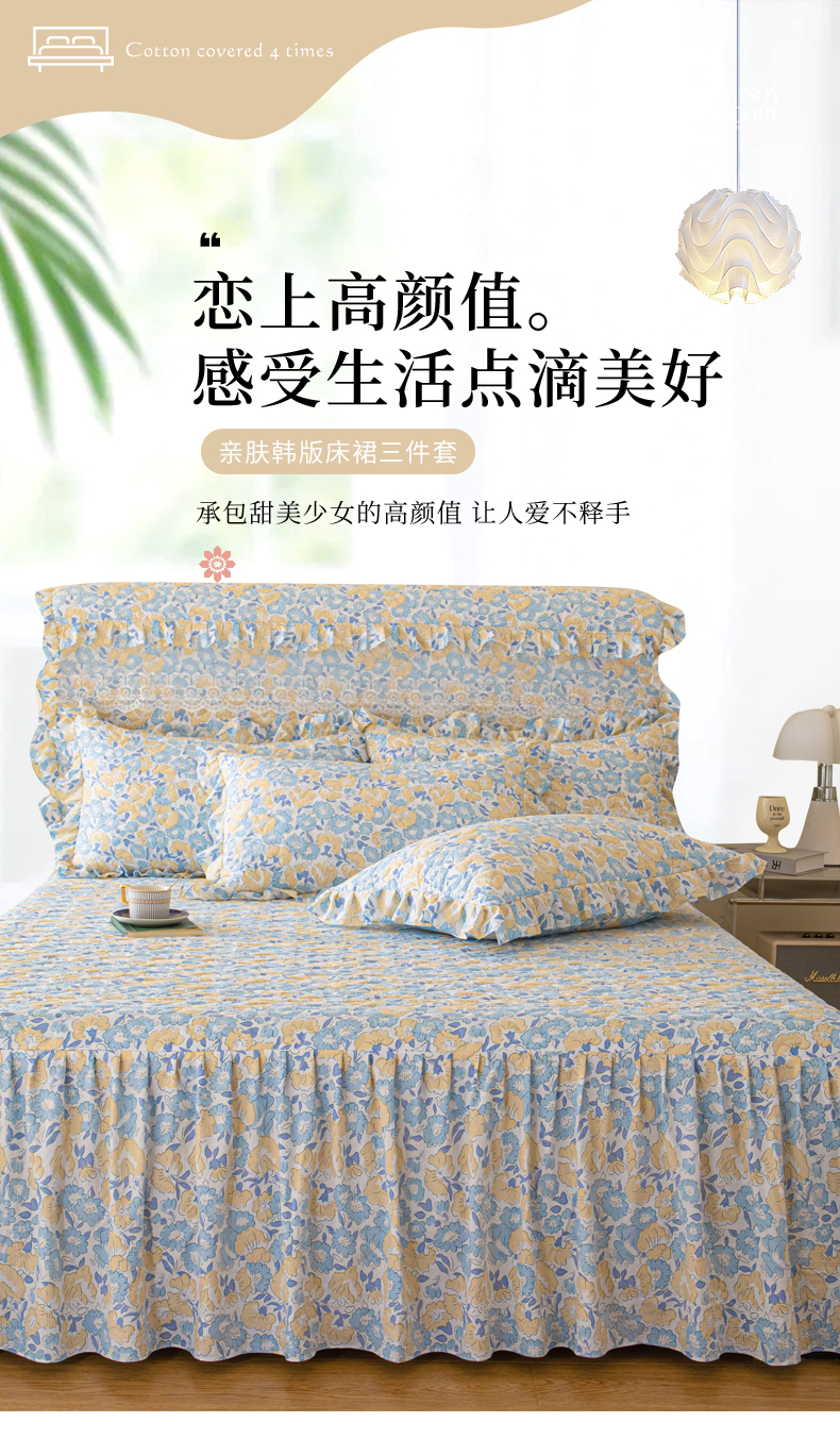 (总)十个点家纺 2024新款云锦棉印花床裙三件套-晚秋系列,繁花似锦,富贵小花,红粉世家,蓝色玫瑰,秋叶-兰,晚秋,杏叶繁花