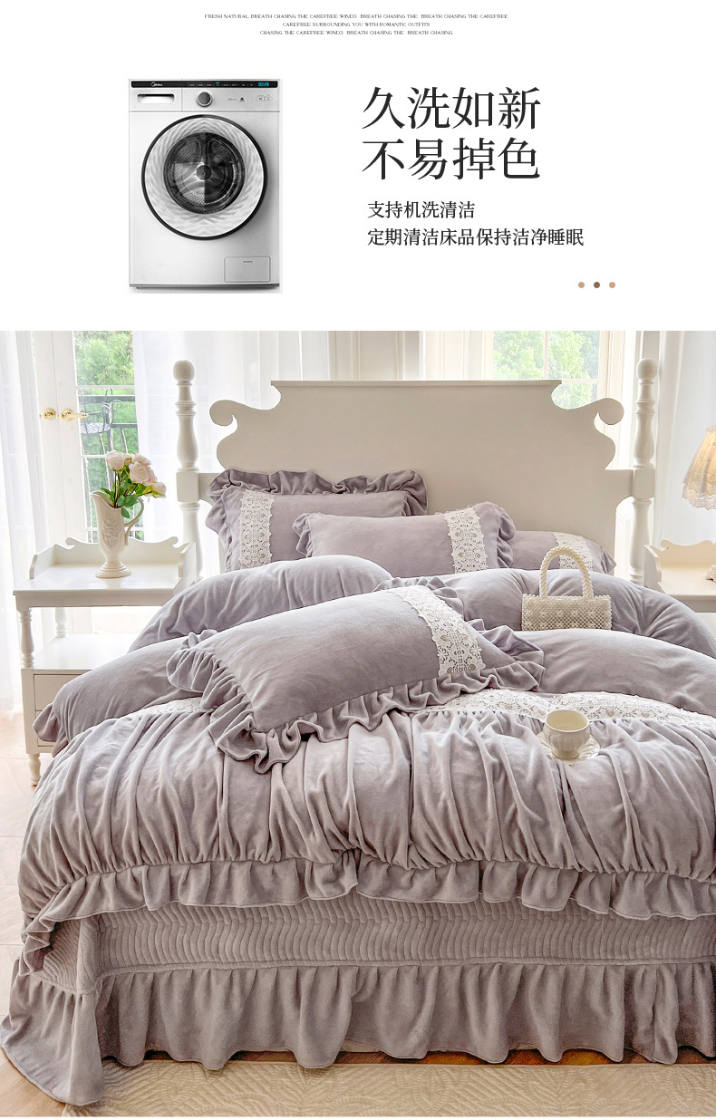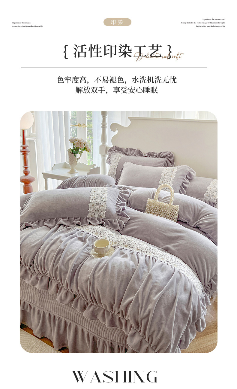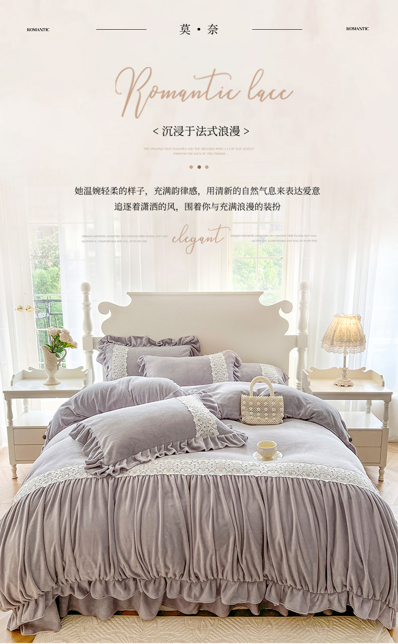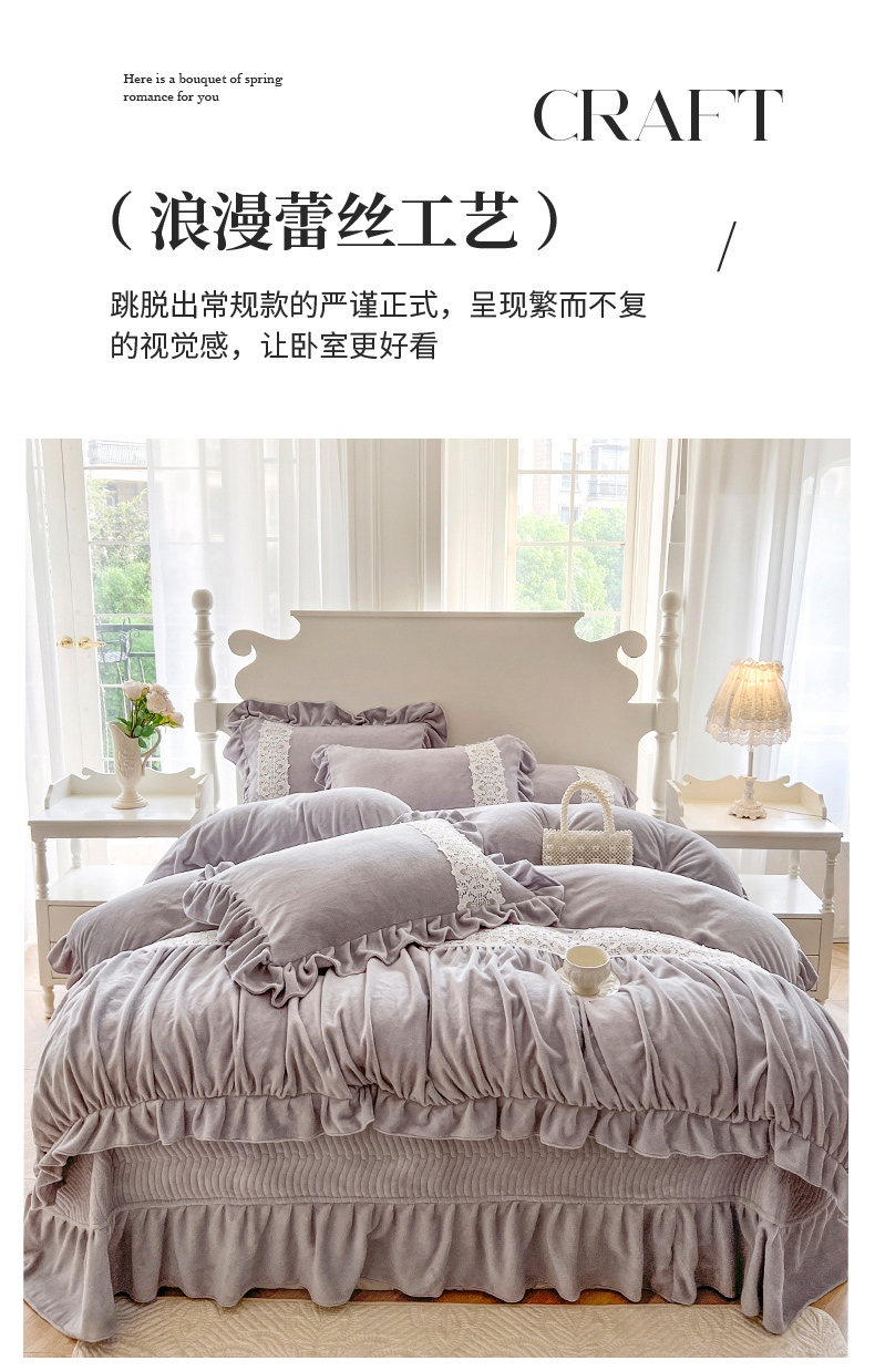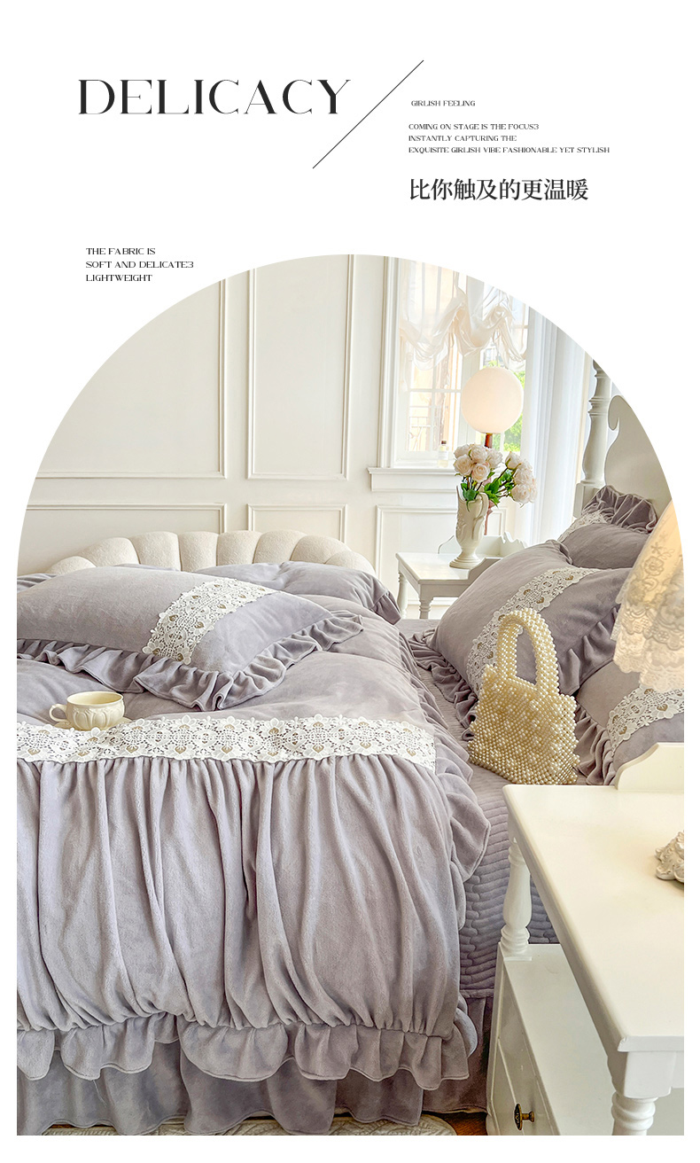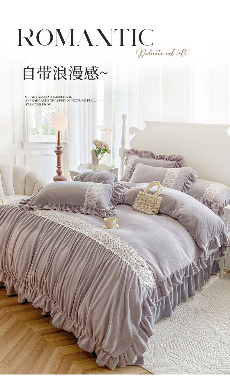 (总)乐朵家居 2025新款 25-1 芯语 蕾丝床裙,豆沙,灰,卡其,绿,米,紫