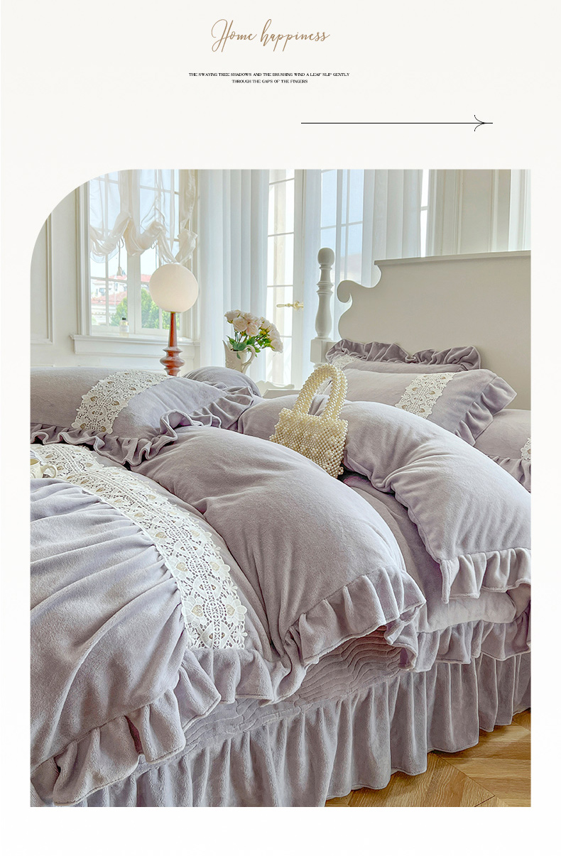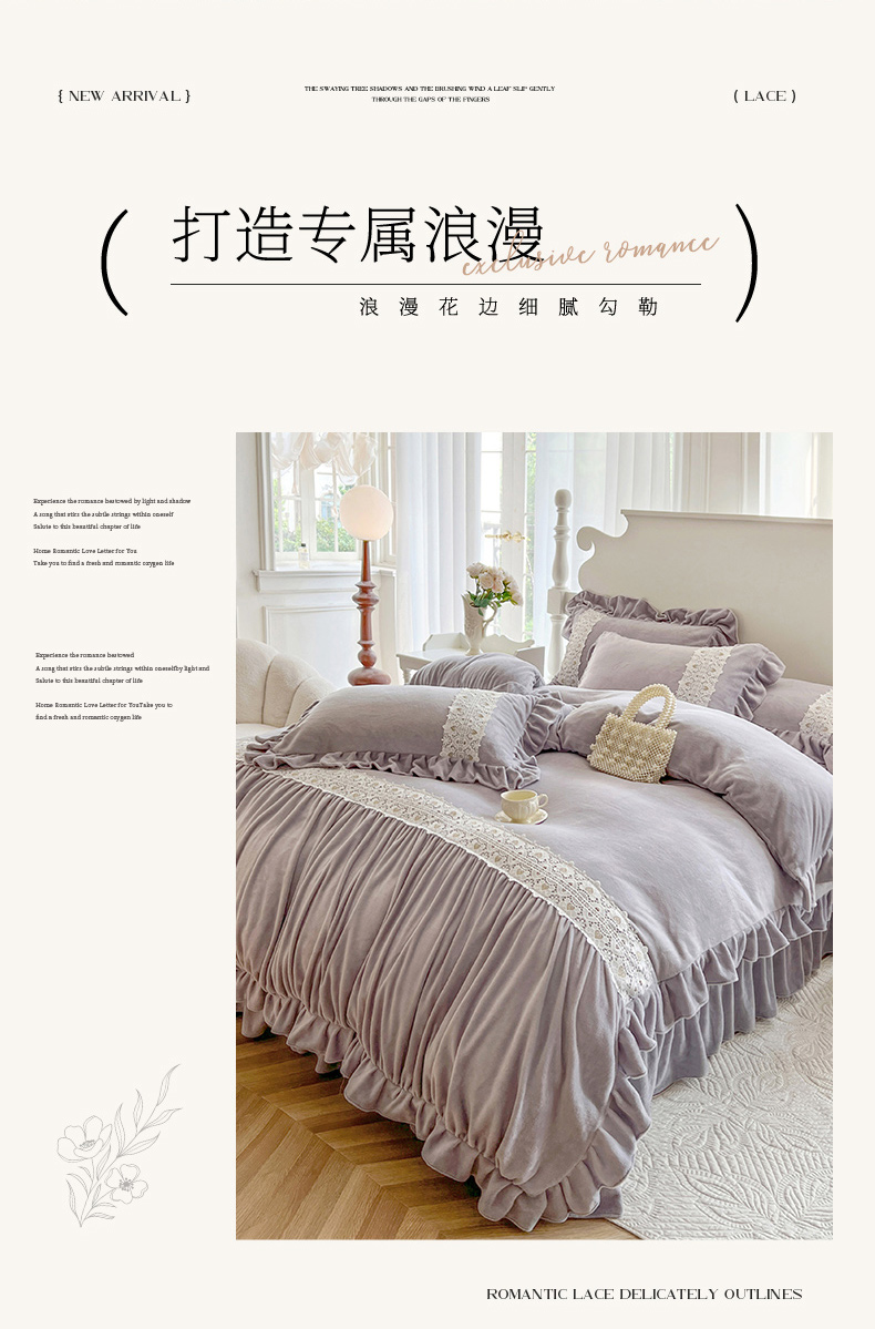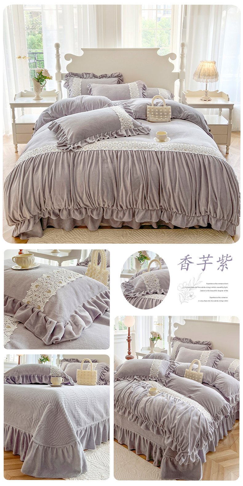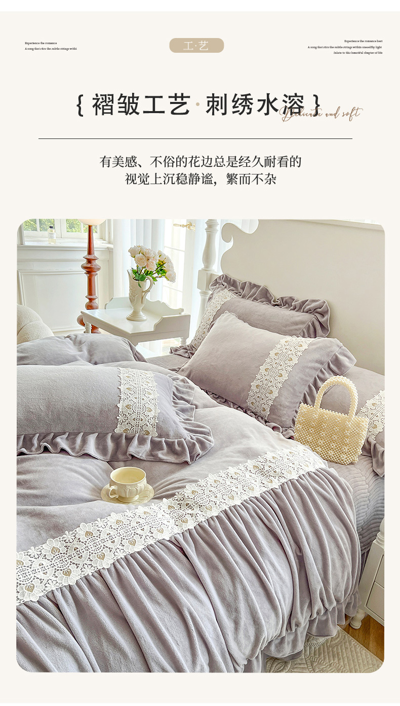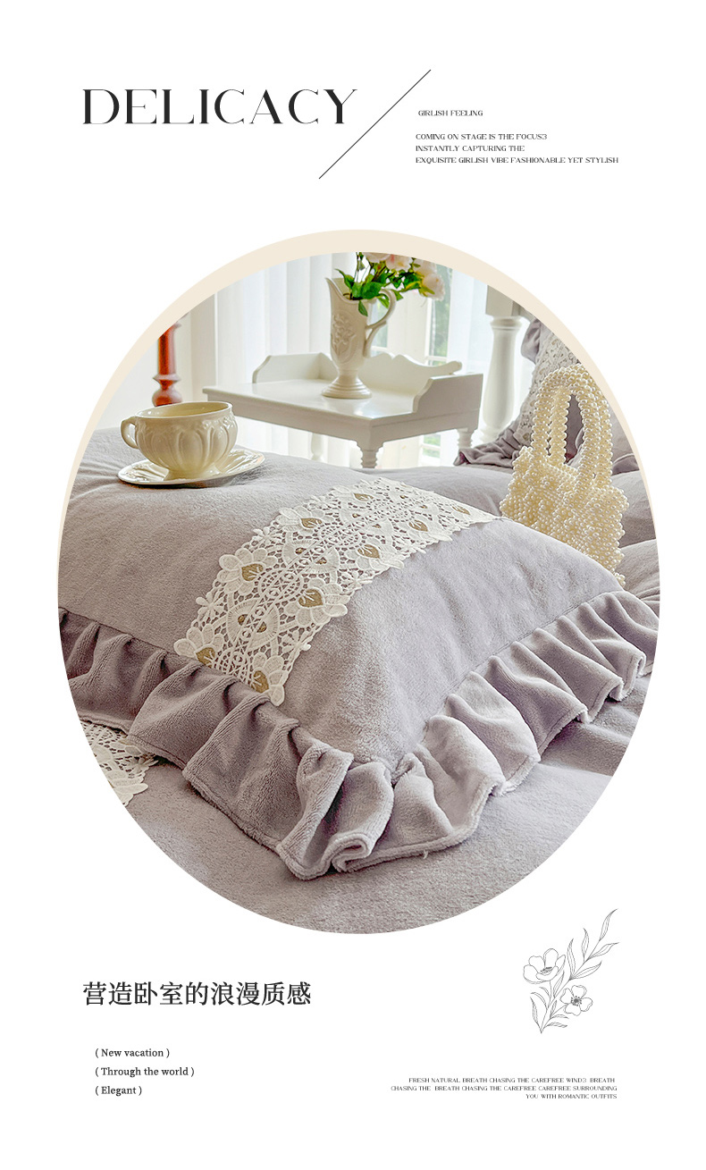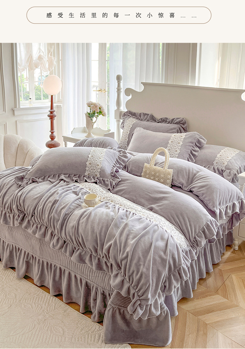 (总)乐朵家居 2025新款 25-1 芯语 蕾丝床裙,豆沙,灰,卡其,绿,米,紫