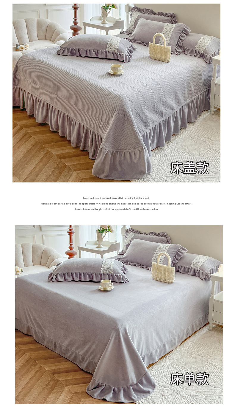 (总)乐朵家居 2025新款 宝格 牛奶绒床单款夹棉床盖四件套【床单款控价268 床盖款298】,浅豆沙,琉离紫,抹茶绿,天空灰,浅卡其