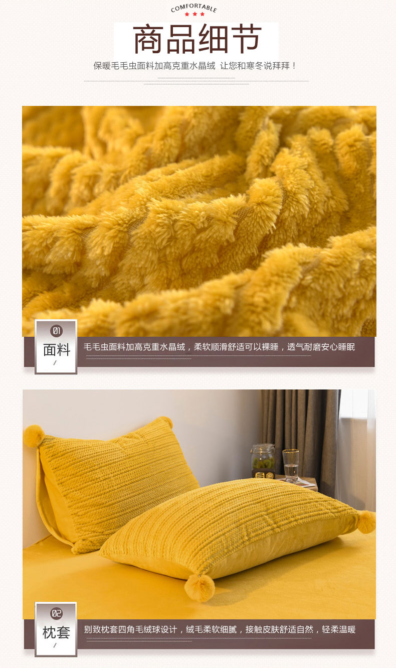 商品名称:仟网汇 2024新款热款剪花绒毛毛球绒水晶绒四件套 粉色