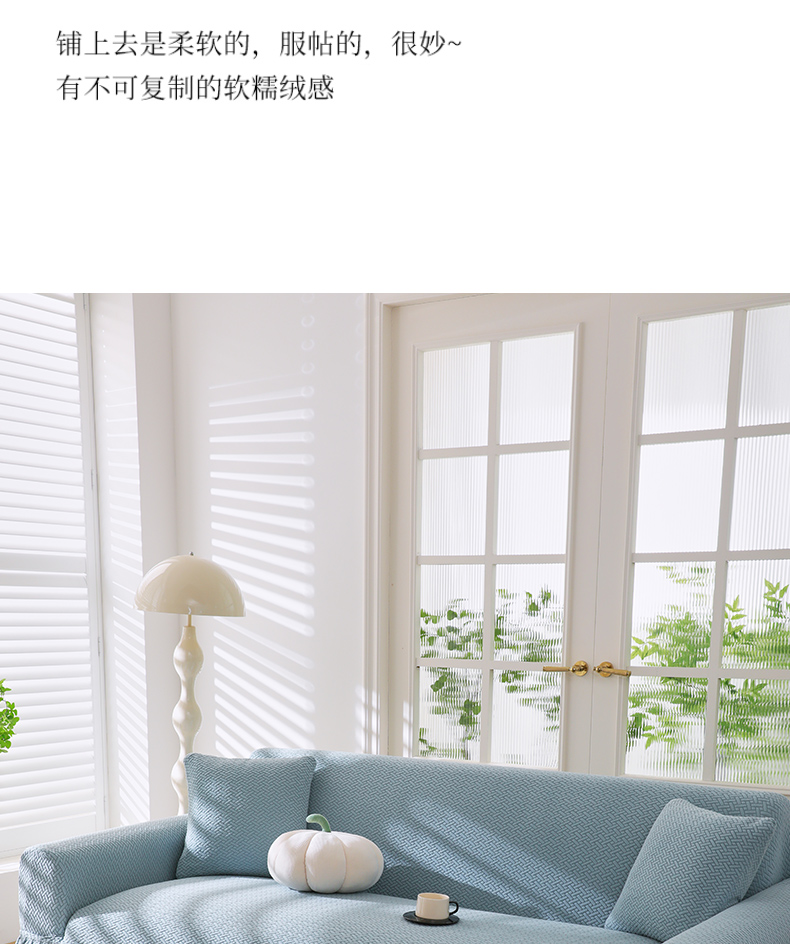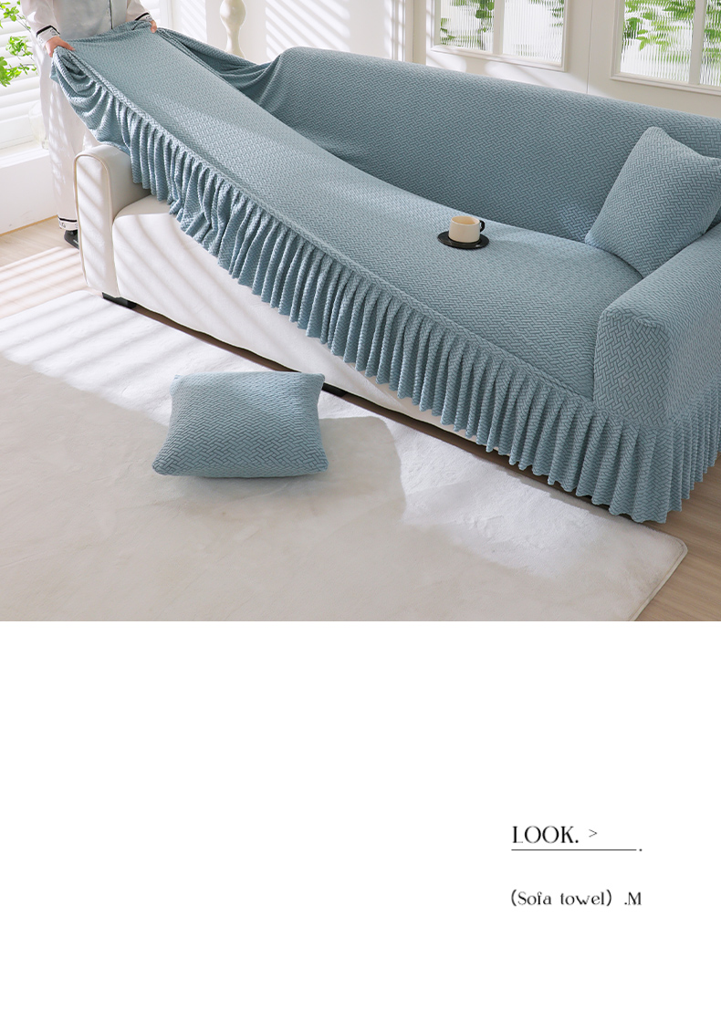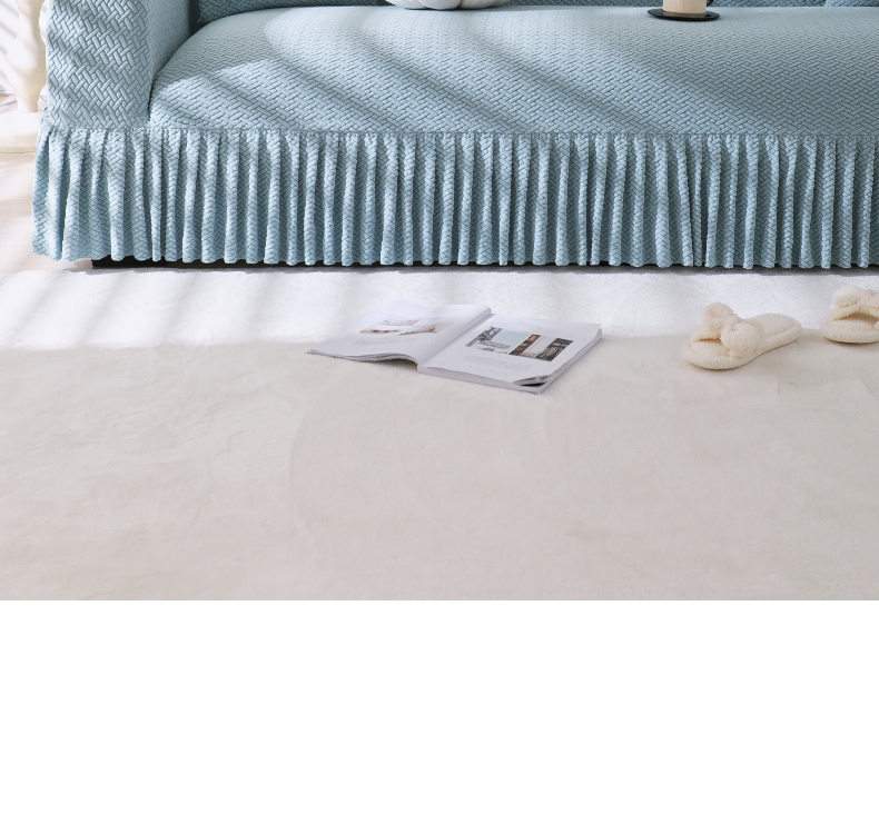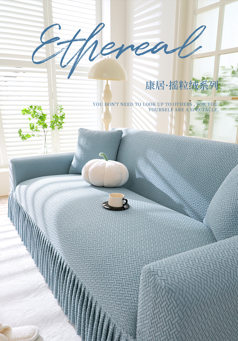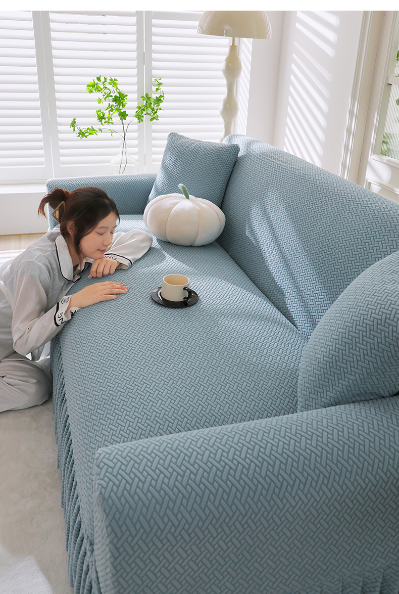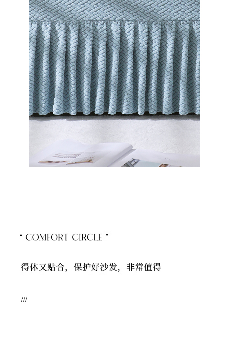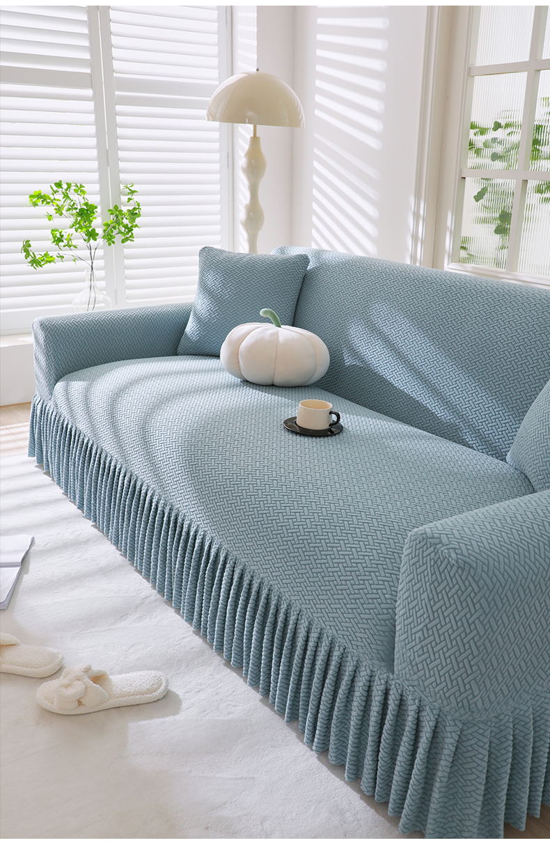 沐沐家纺 2026新款摇粒绒裙边沙发套 宁静蓝