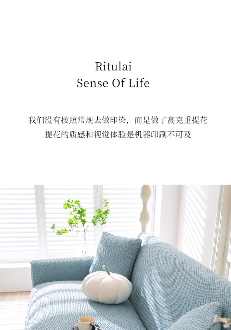 (总)沐沐家纺 2026新款双人位臻品提花沙发套,孔雀蓝,米白,浅灰,浅紫,青色