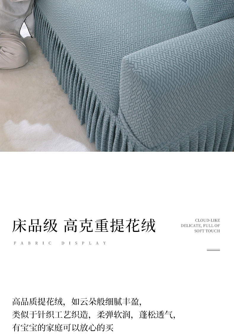 商品名称:沐沐家纺 2026新款摇粒绒裙边沙发套 宁静蓝