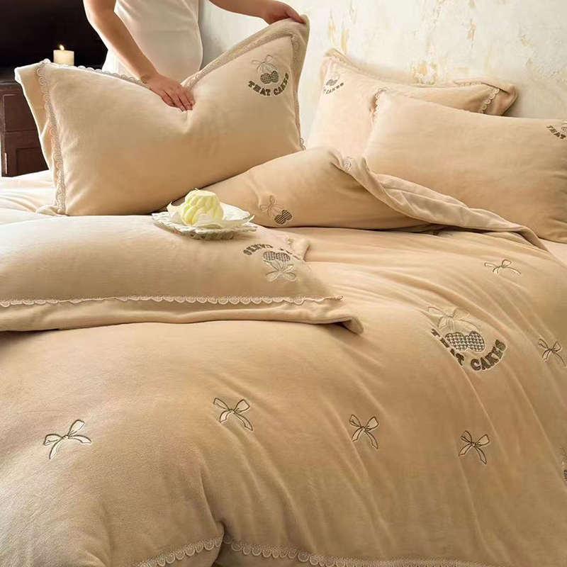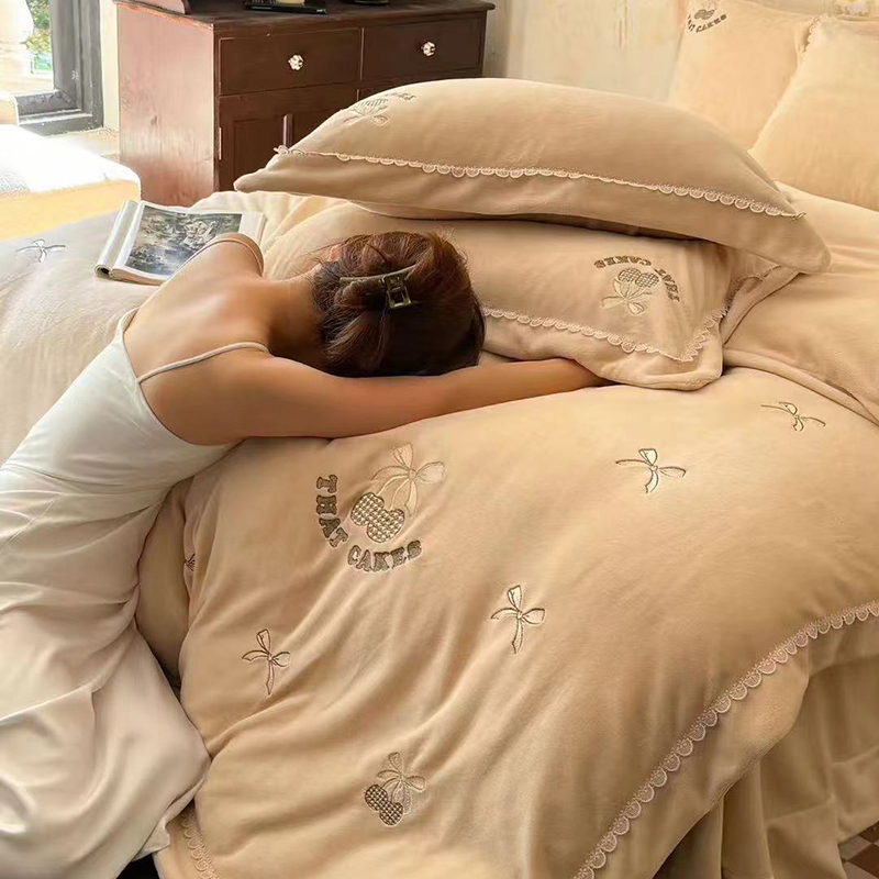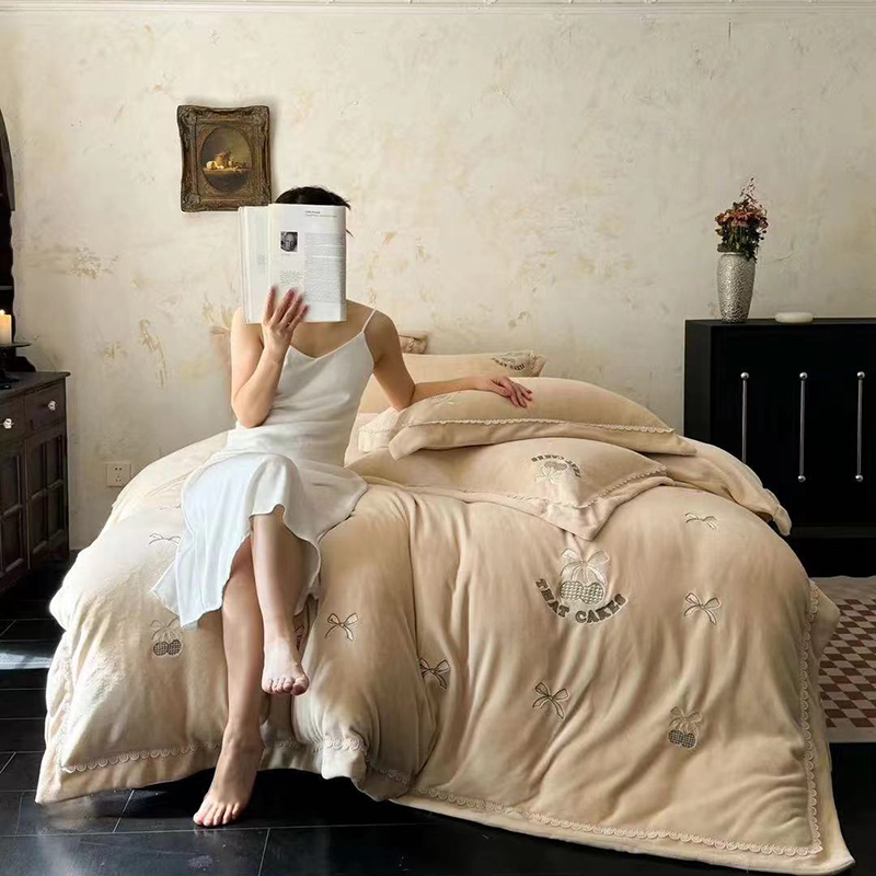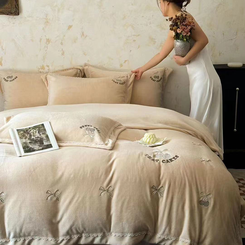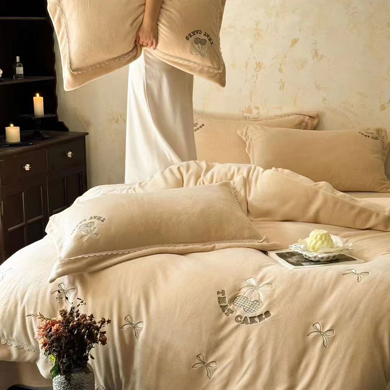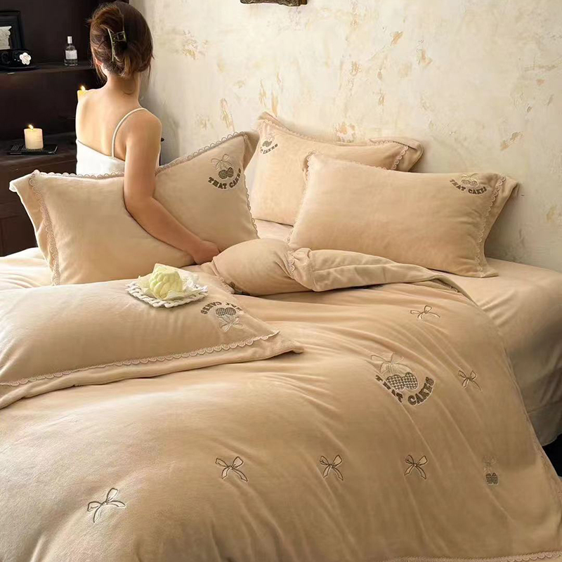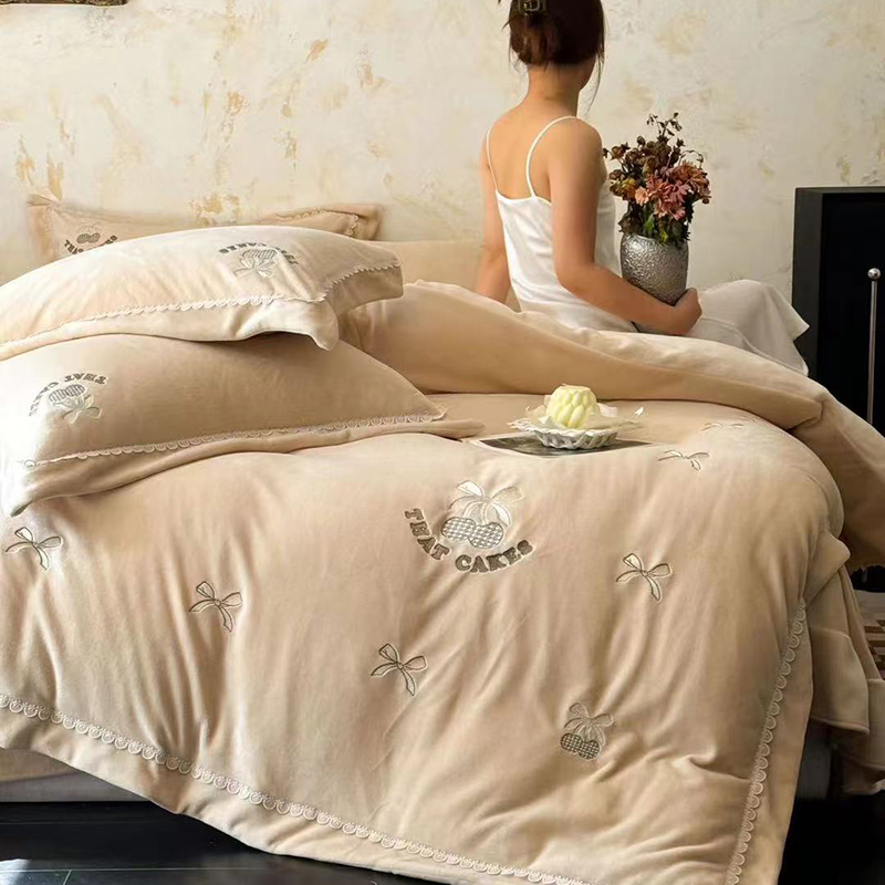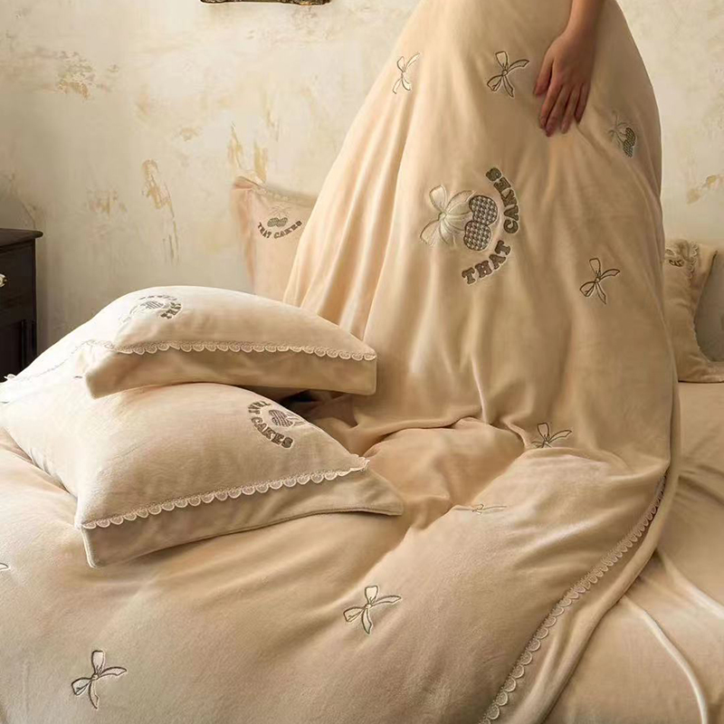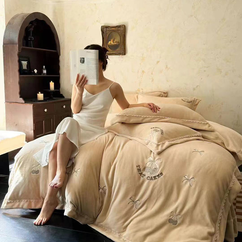 • 91家纺网 家纺一手货源 找家纺 未来家居 2024新款全活性高克重牛奶绒四件套 甜心-奶黄