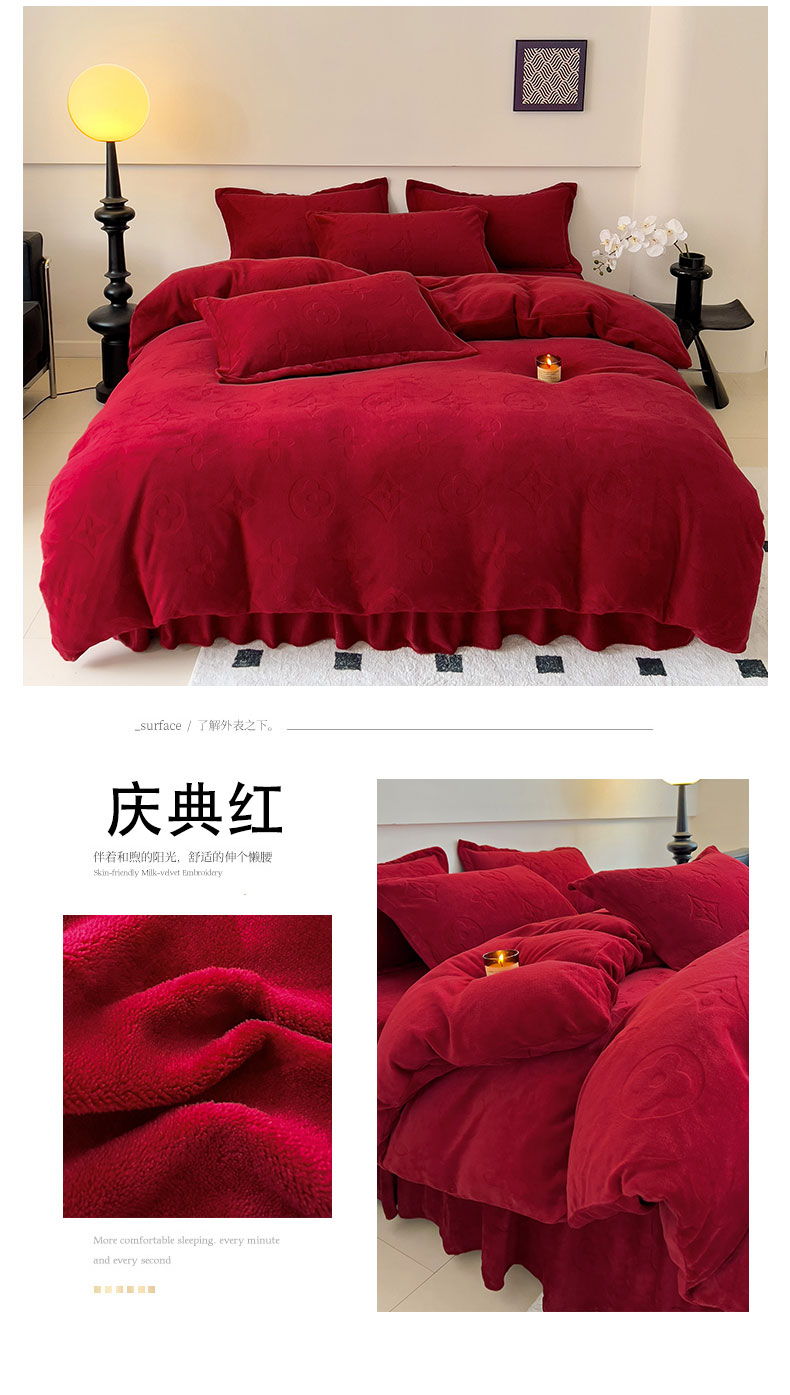 当前位置: 91家纺网 > 商品网购 > 床品套件 > 四件套 > 牛奶绒四件套 > 2024新款款立体剪花牛奶绒四件套 庆典红