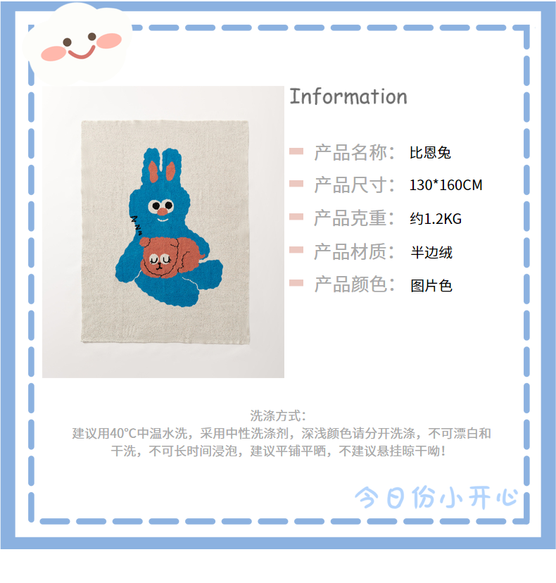 商品名称:(总)暖绵绵家纺 2025新款半边绒毛毯-比恩兔(最低零售价:161元)
