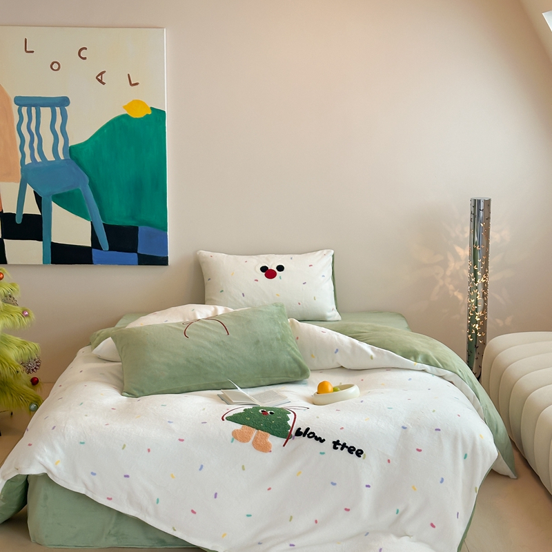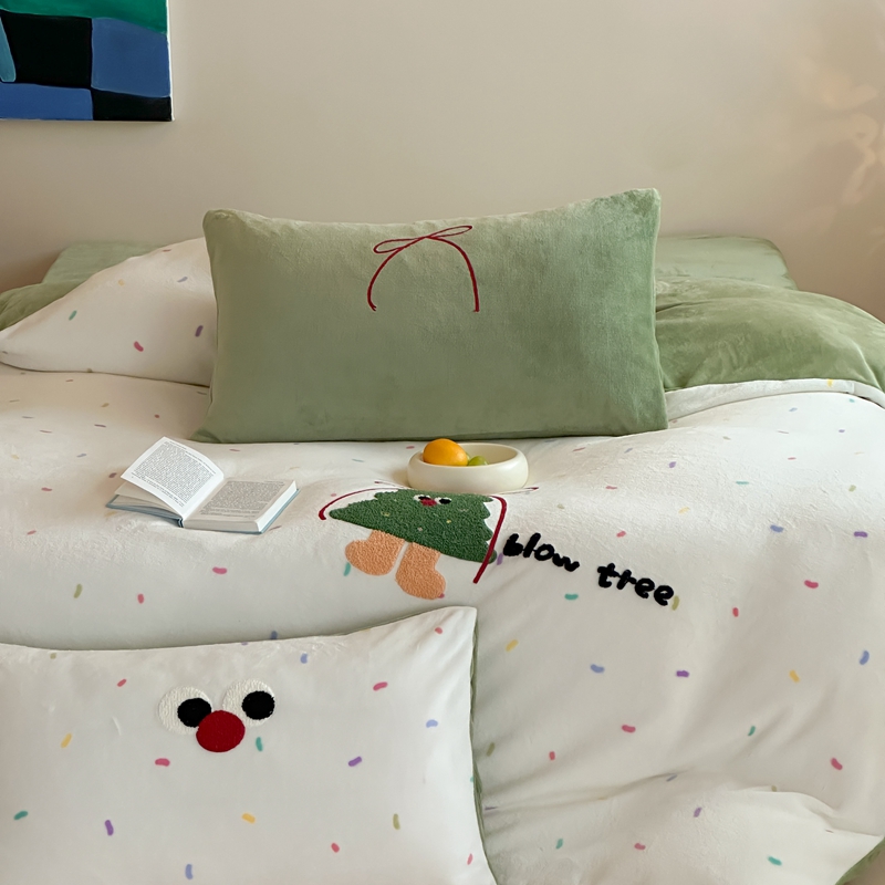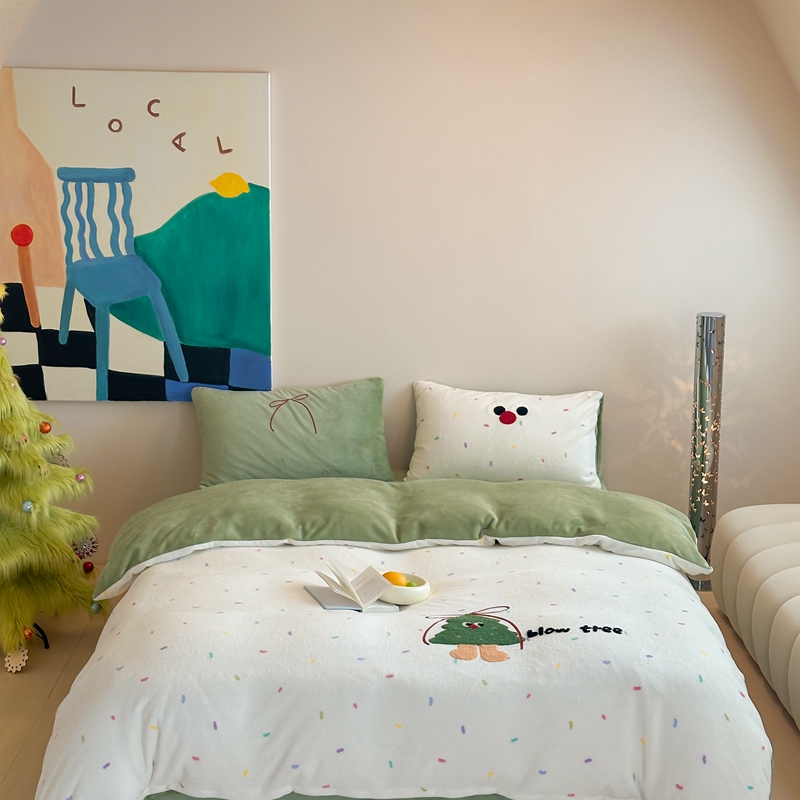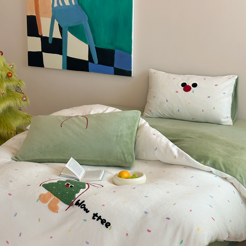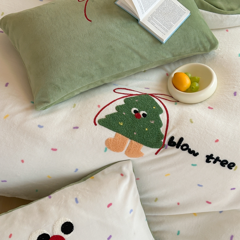 商品名称:时年家纺 2024新款牛奶绒毛巾绣系列四件套(充值会员优惠5元) 圣诞树