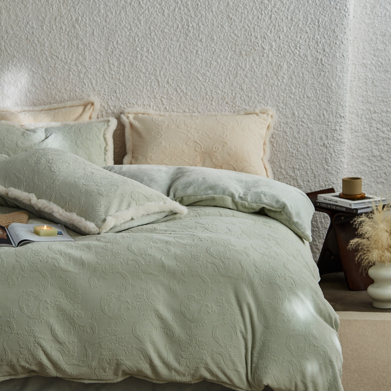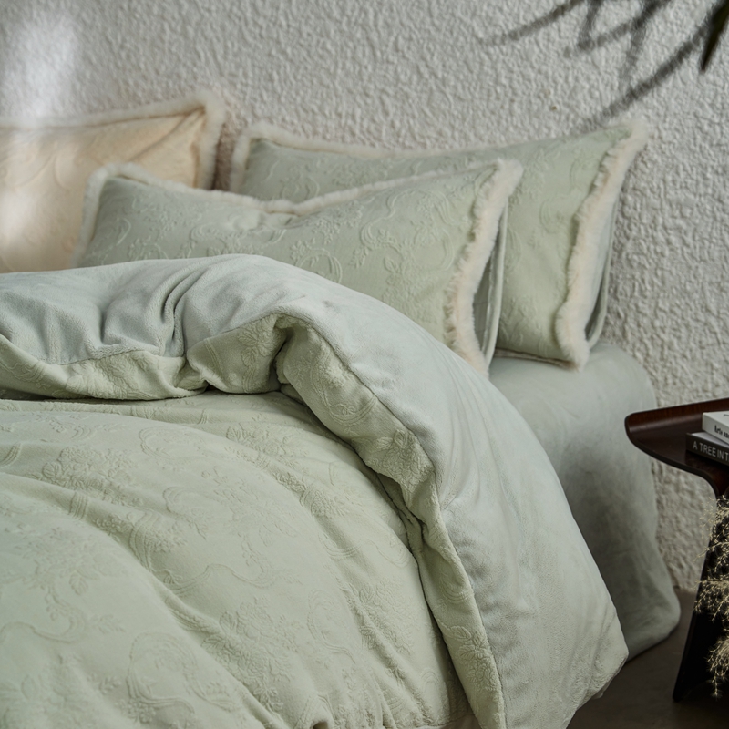 商品名称:时年家纺 2024新款240g全消光牛奶绒雕花系列四件套(充值会员优惠10元/套) 提花绒-绿意