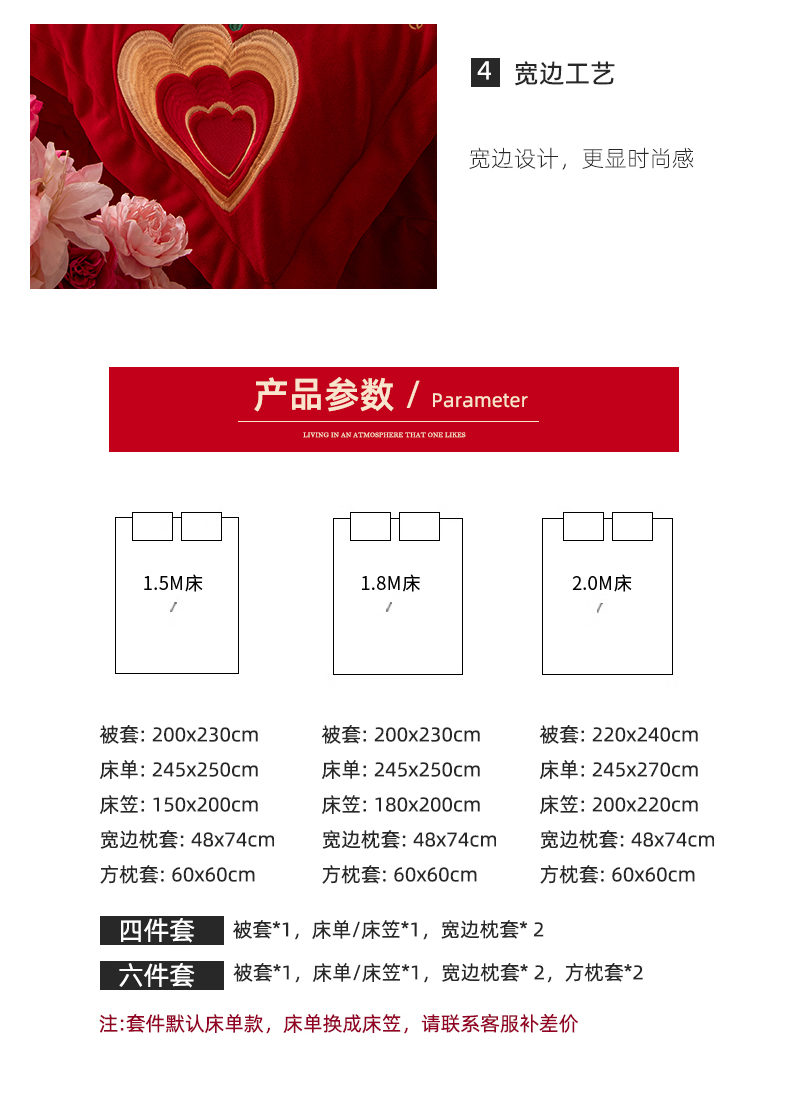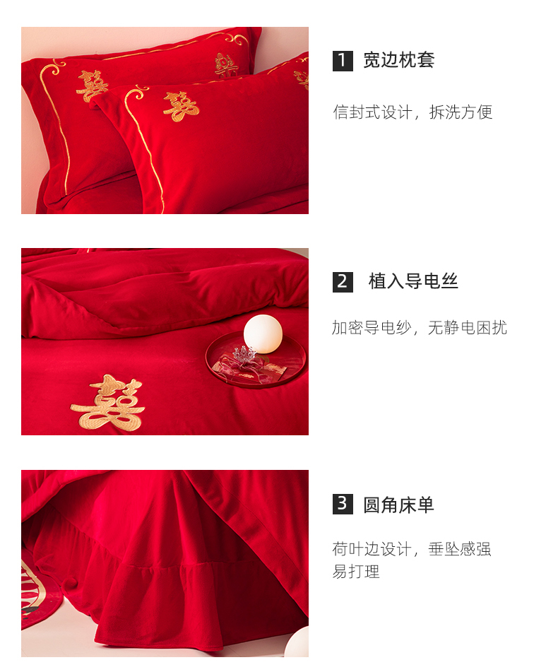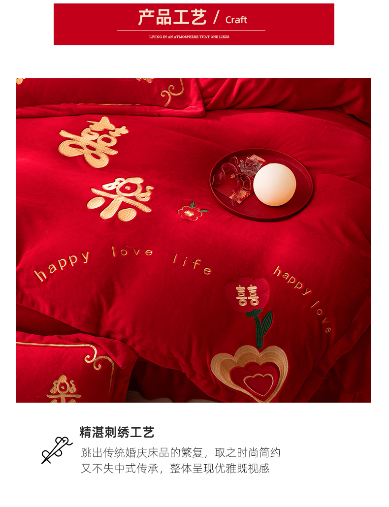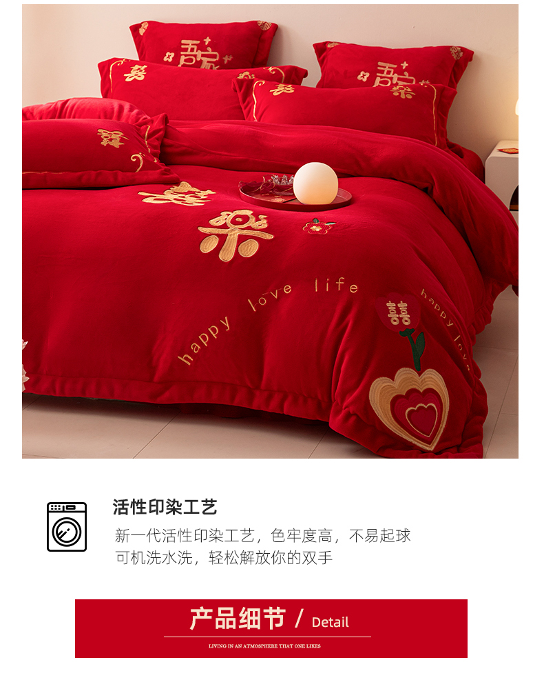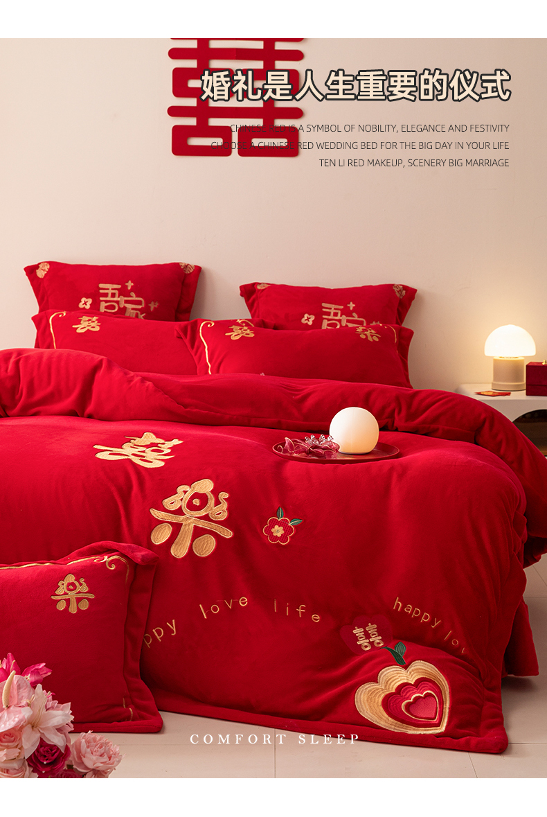 当前位置: 91家纺网 > 商品网购 > 床品套件 > 四件套 > 牛奶绒四件套 > 2025新款高克重花边贴布款牛奶绒婚庆刺绣四件套 牛奶绒婚庆-喜乐