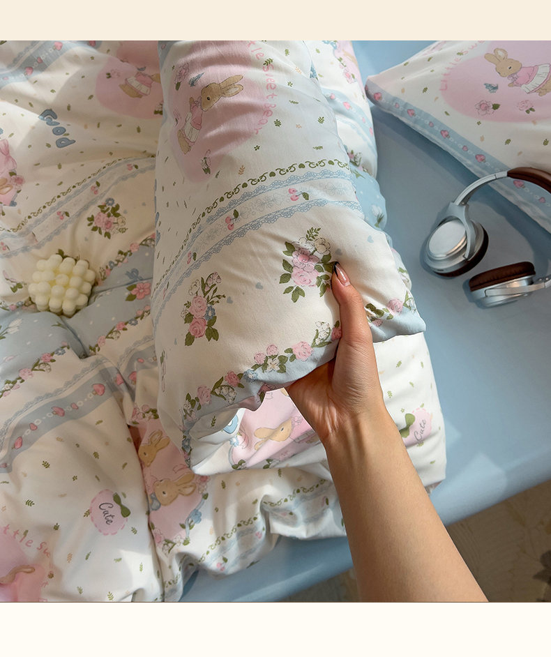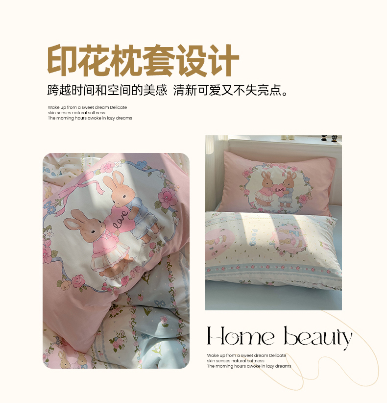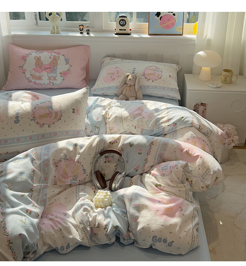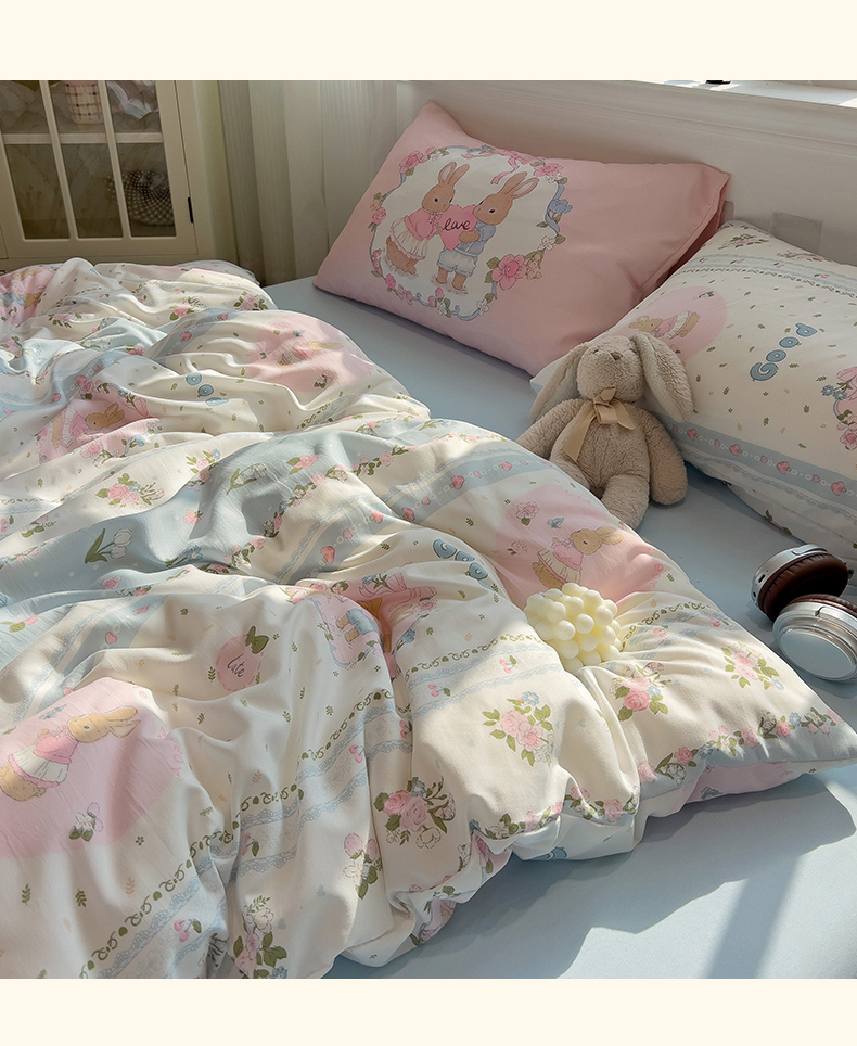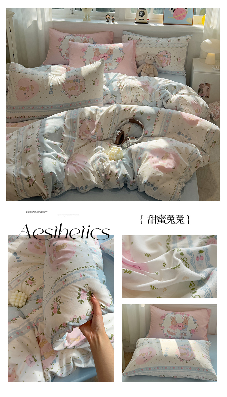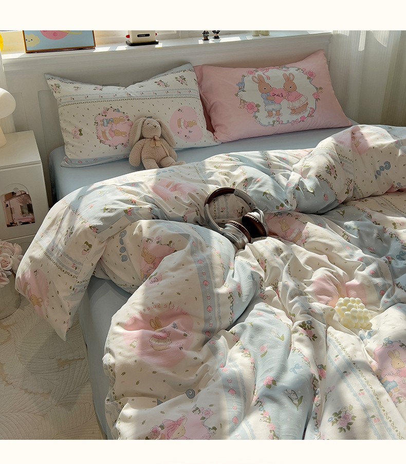 当前位置: 91家纺网 > 商品网购 > 床品套件 > 四件套 > 水洗棉四件套 > 妖妖家纺 2025新款水洗云朵糯糯棉大版枕套四件套 甜蜜兔兔