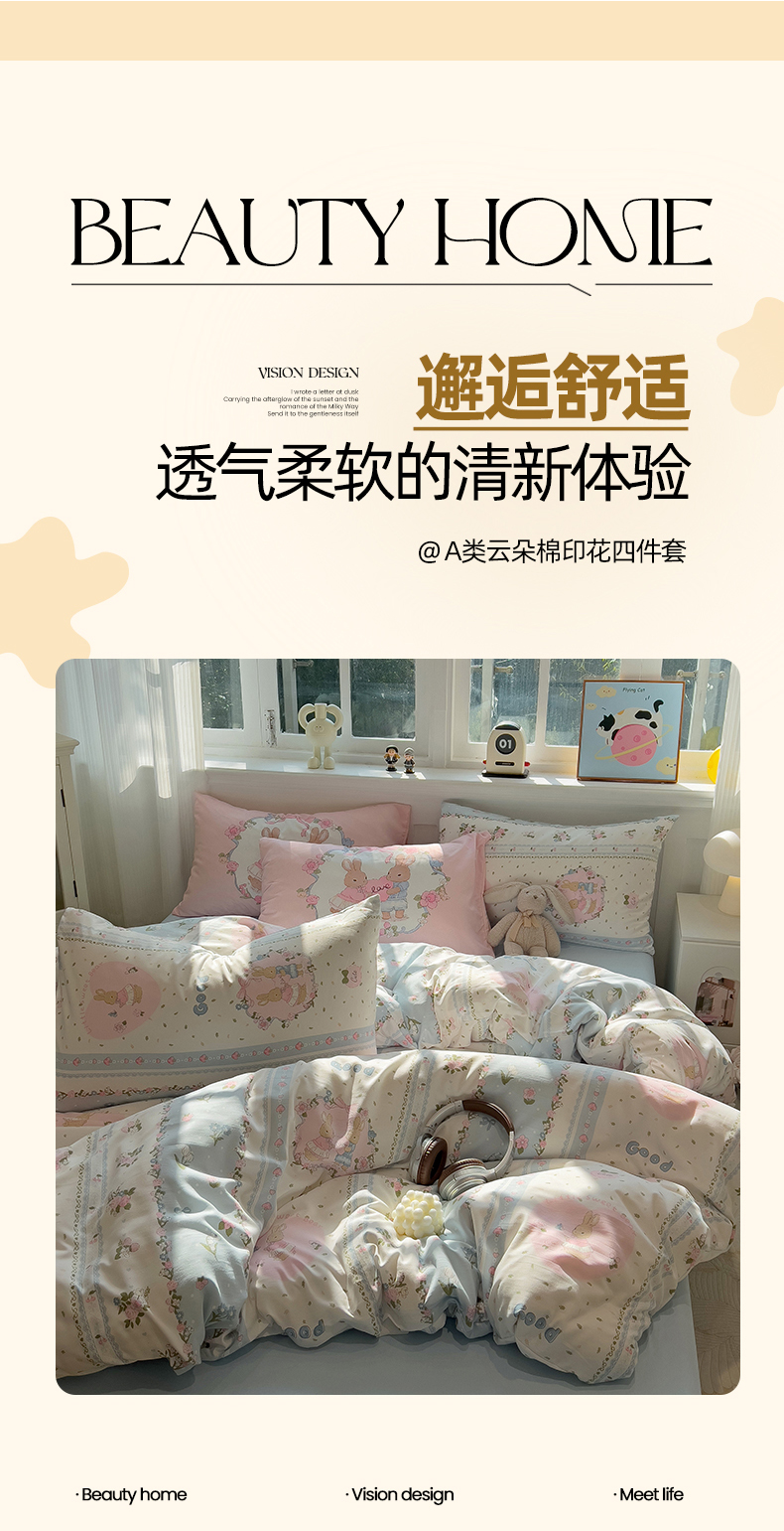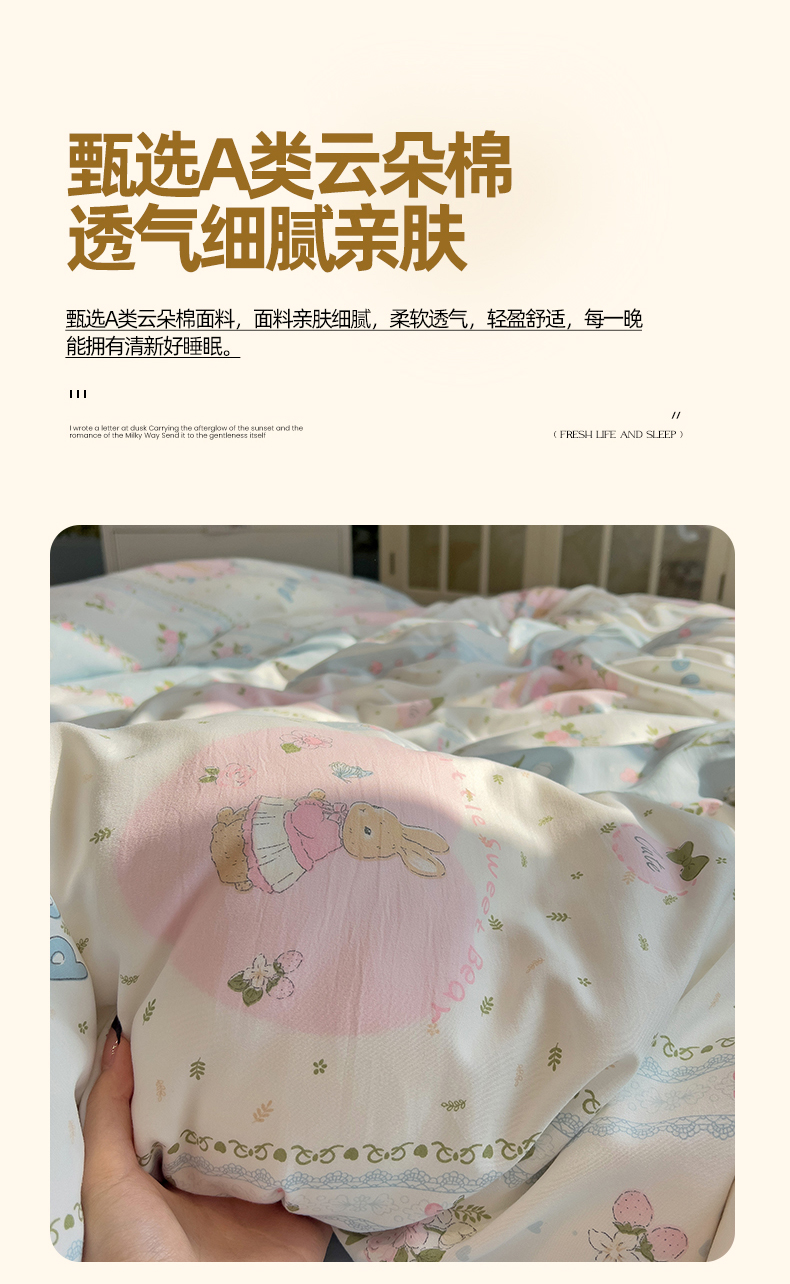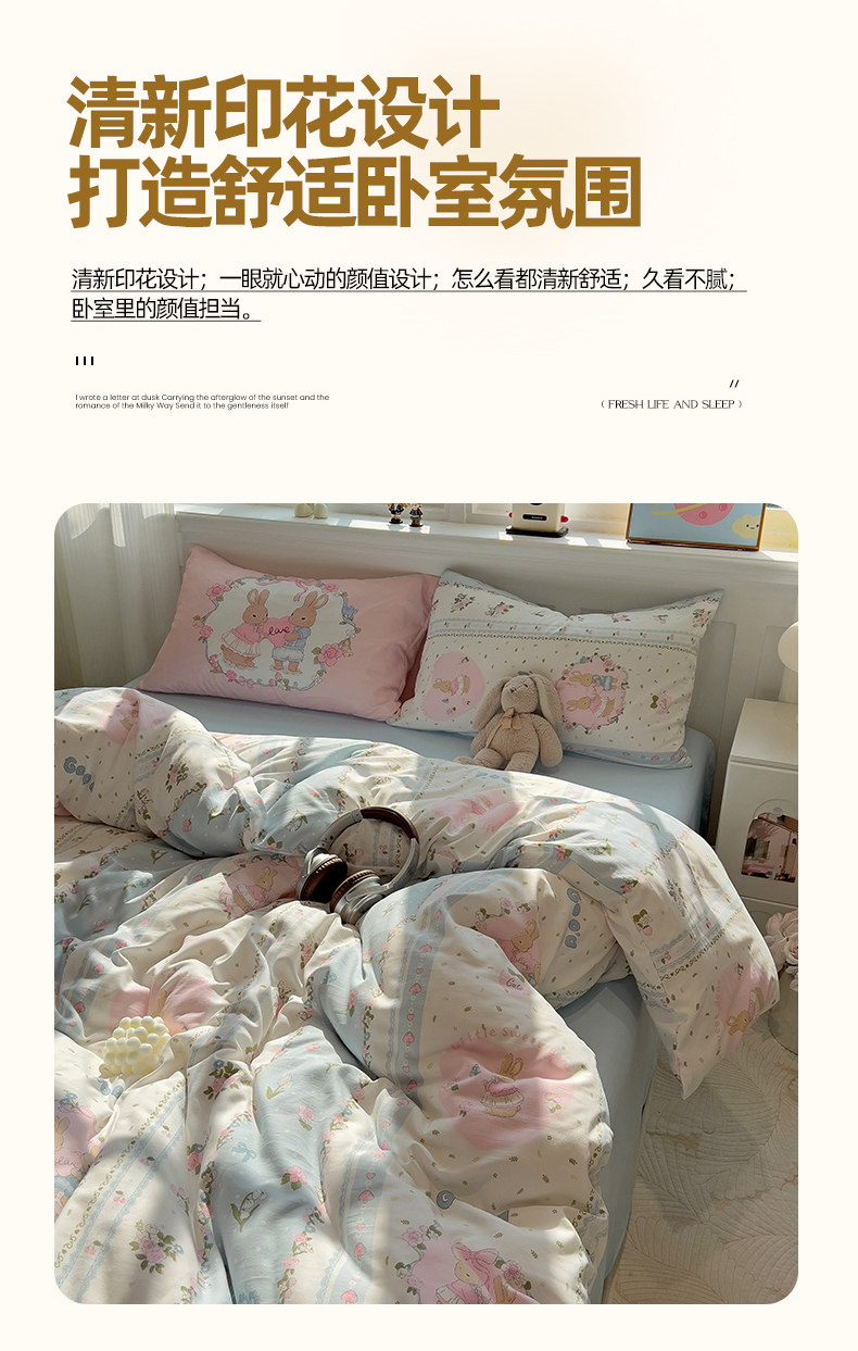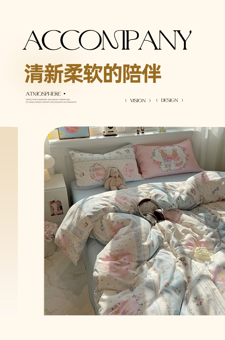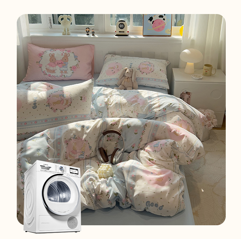 当前位置: 91家纺网 > 商品网购 > 床品套件 > 四件套 > 水洗棉四件套 > 妖妖家纺 2025新款水洗云朵糯糯棉大版枕套四件套 甜蜜兔兔