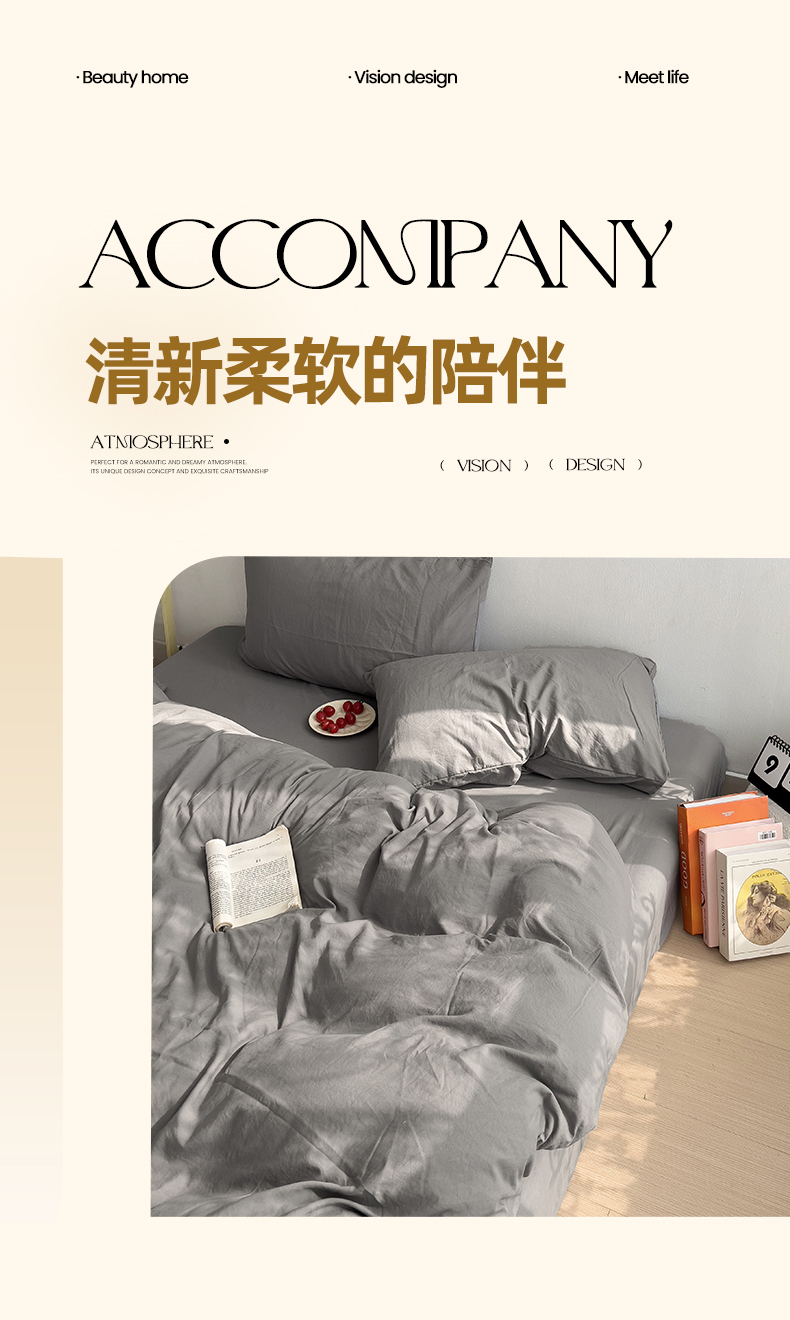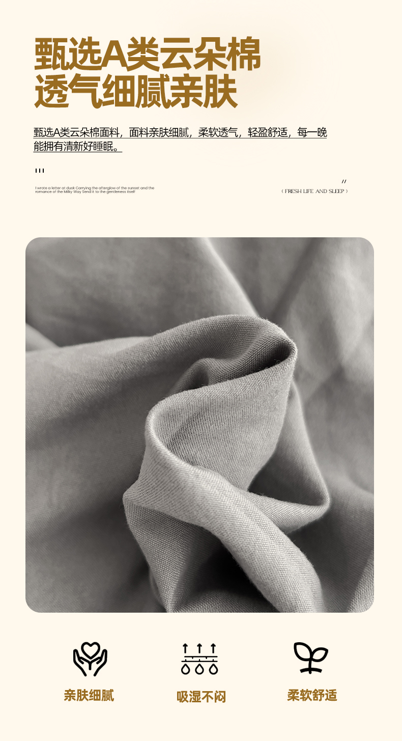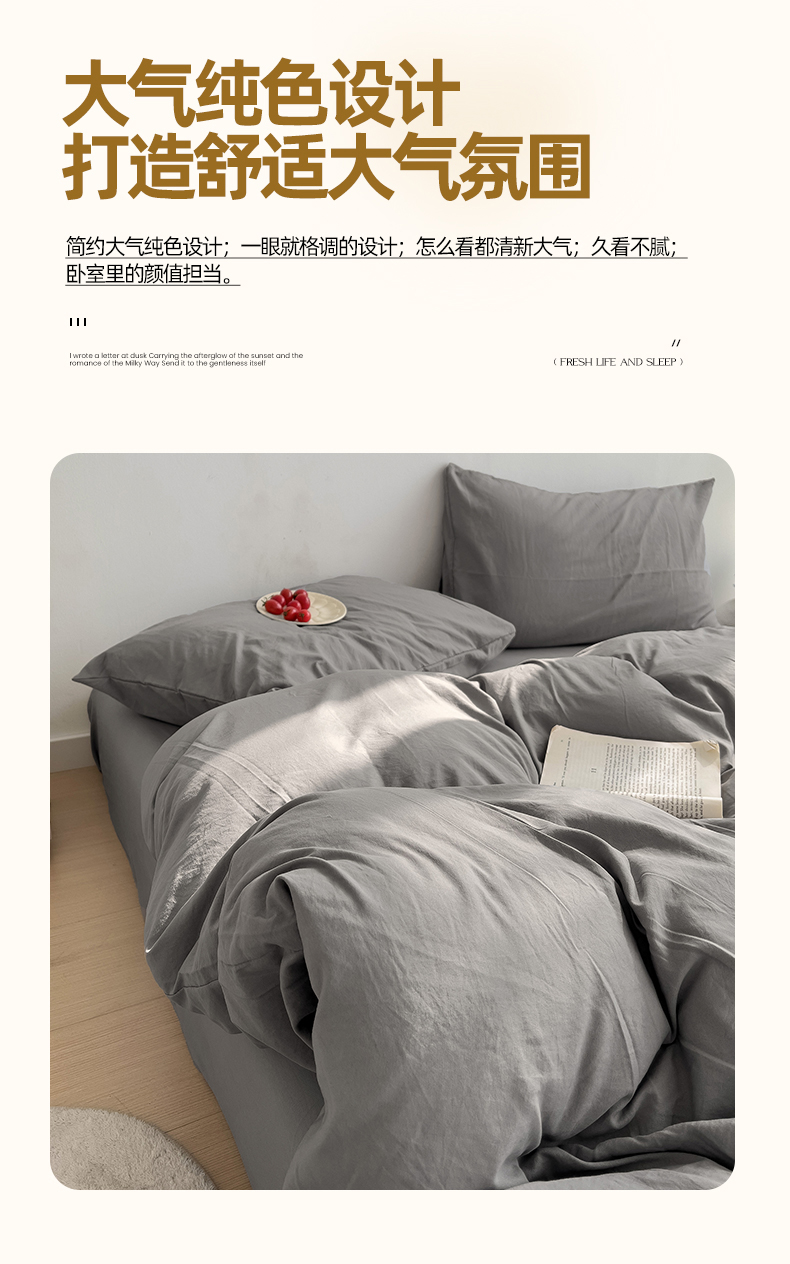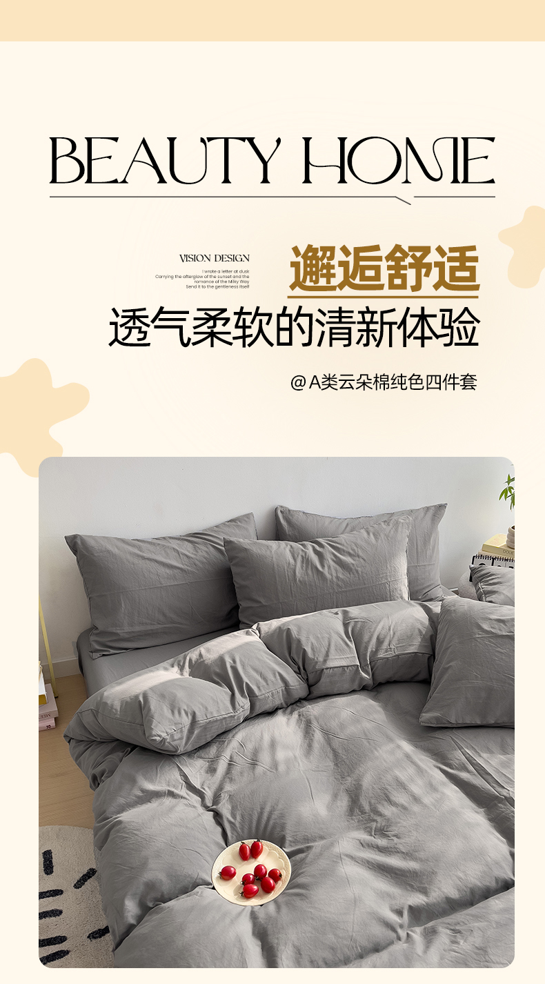 当前位置: 91家纺网 > 商品网购 > 床品套件 > 四件套 > 水洗棉四件套 > 妖妖家纺 2025新款水洗云朵棉纯色四件套 浅灰