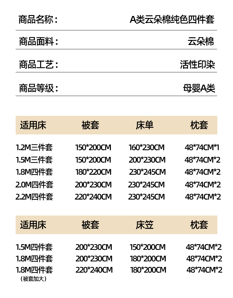 1.8m床笠款四件套(被套150*200) | ¥45.00 |