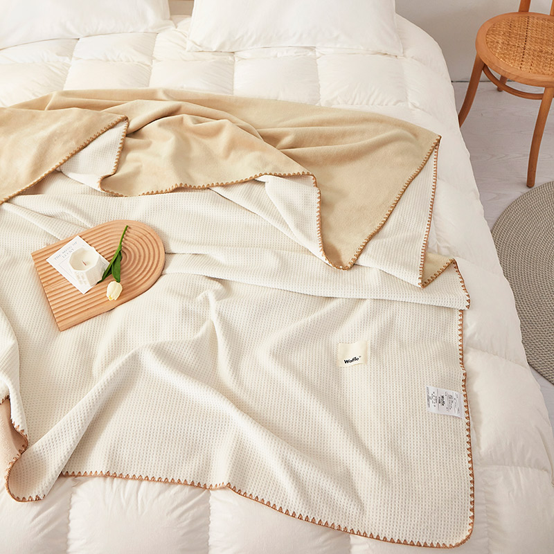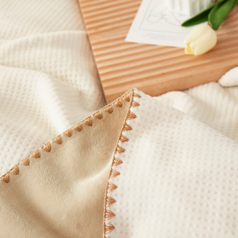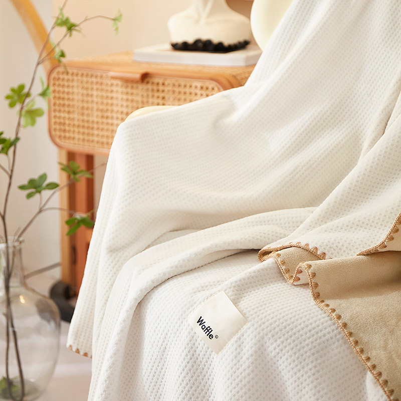 肖恩 2025新款华夫格披肩盖毯毯子 奶白