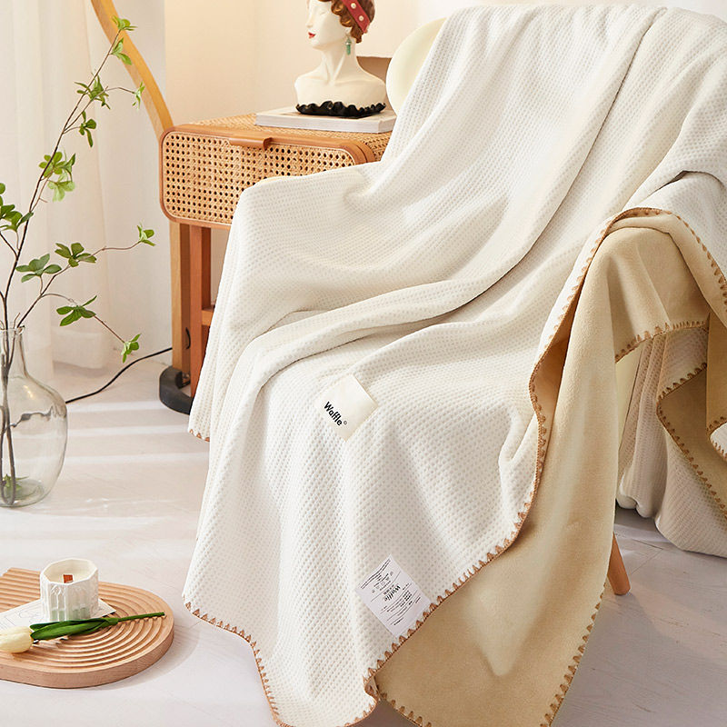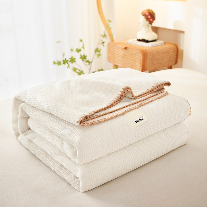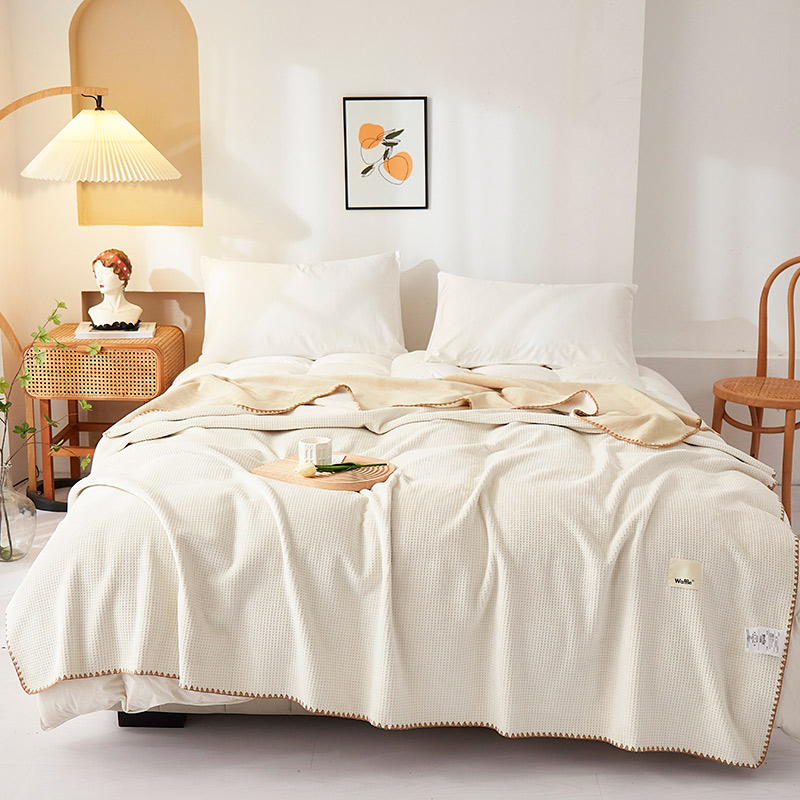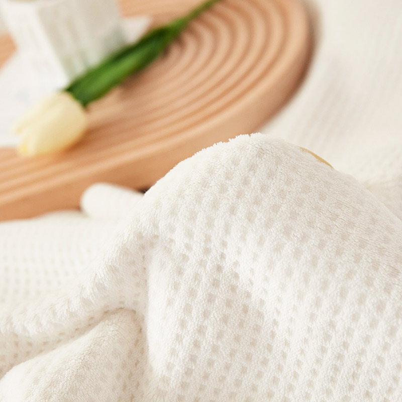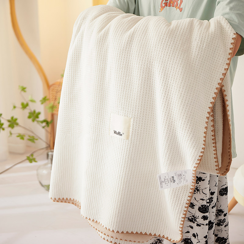 商品名称:肖恩 2025新款华夫格披肩盖毯毯子 奶白