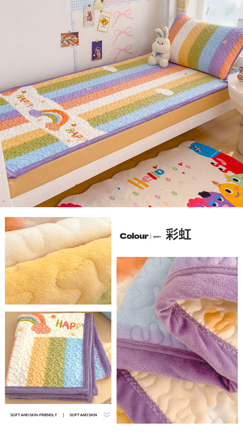 赫梵茜 2024新款90✖200学生牛奶绒床盖彩虹