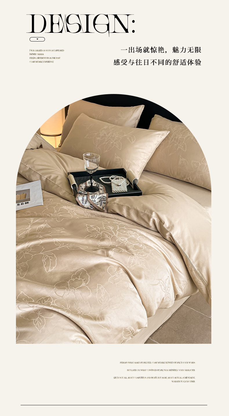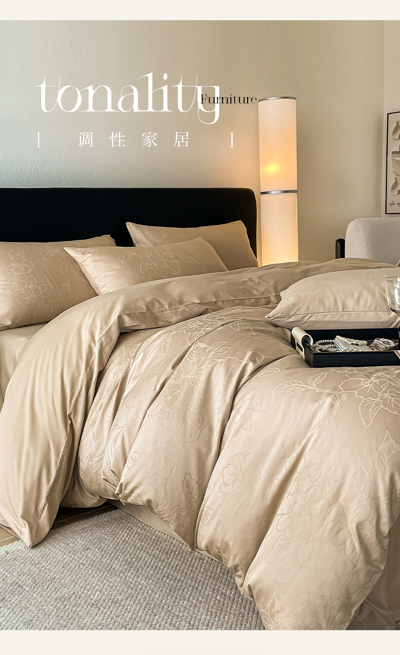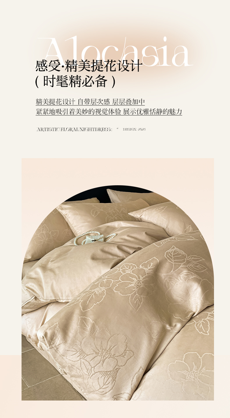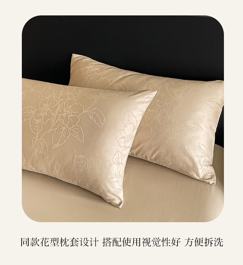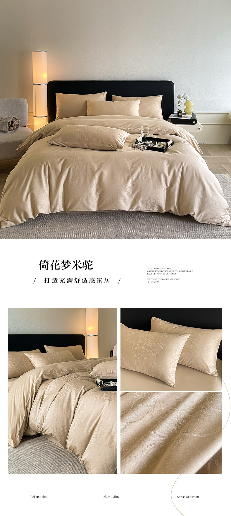 三朵家纺 2024新款全棉贡缎大提花四件套系列 倚花梦米驼