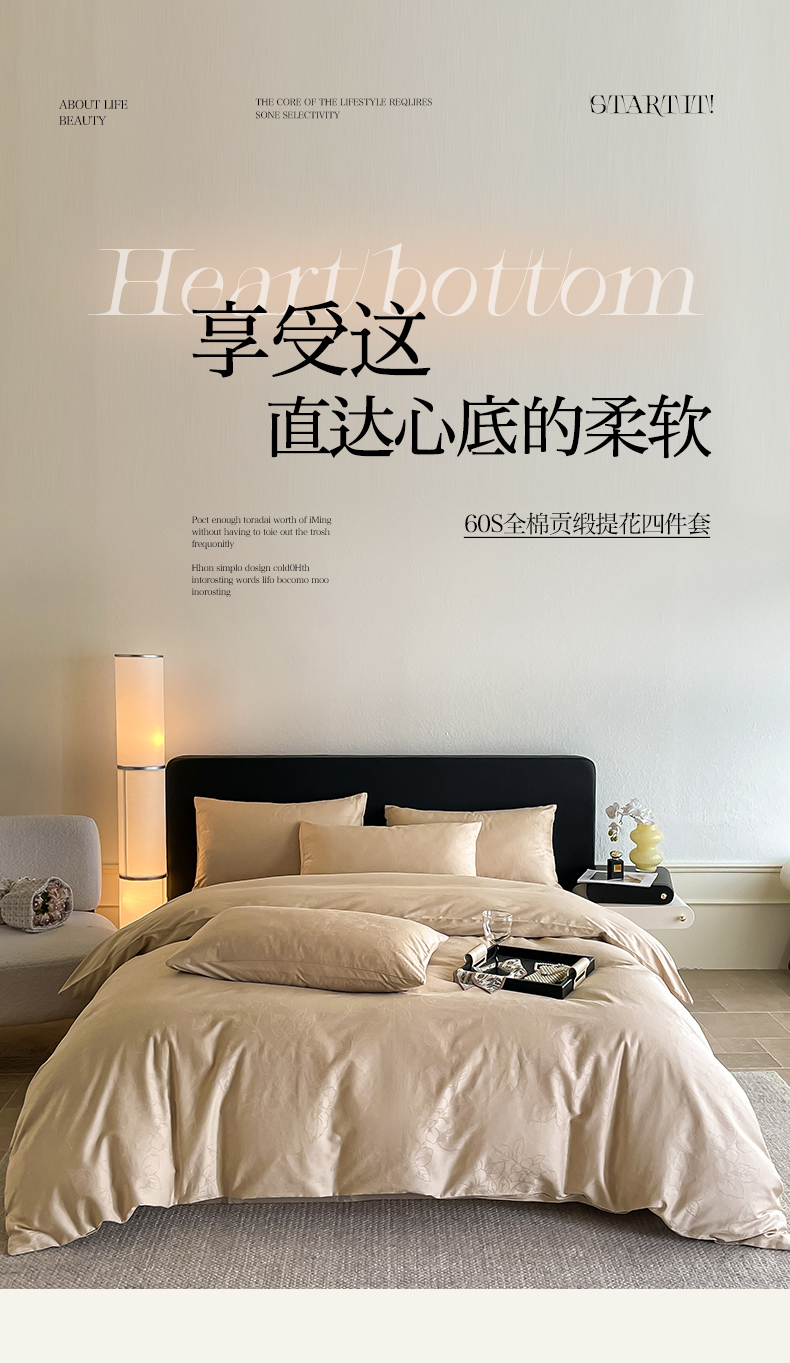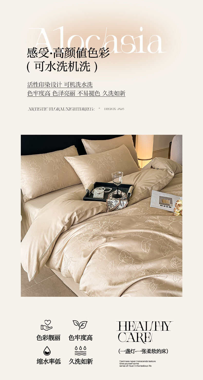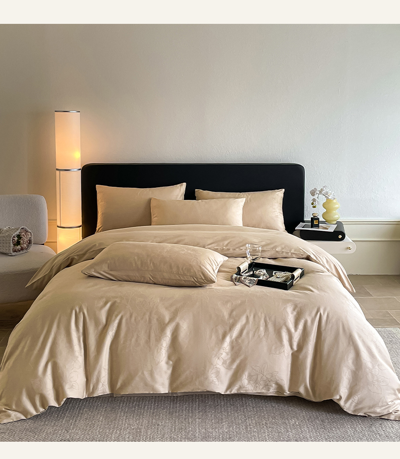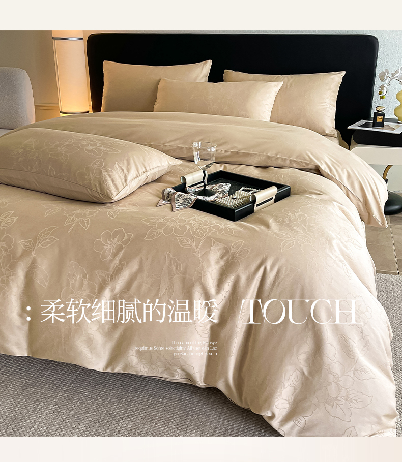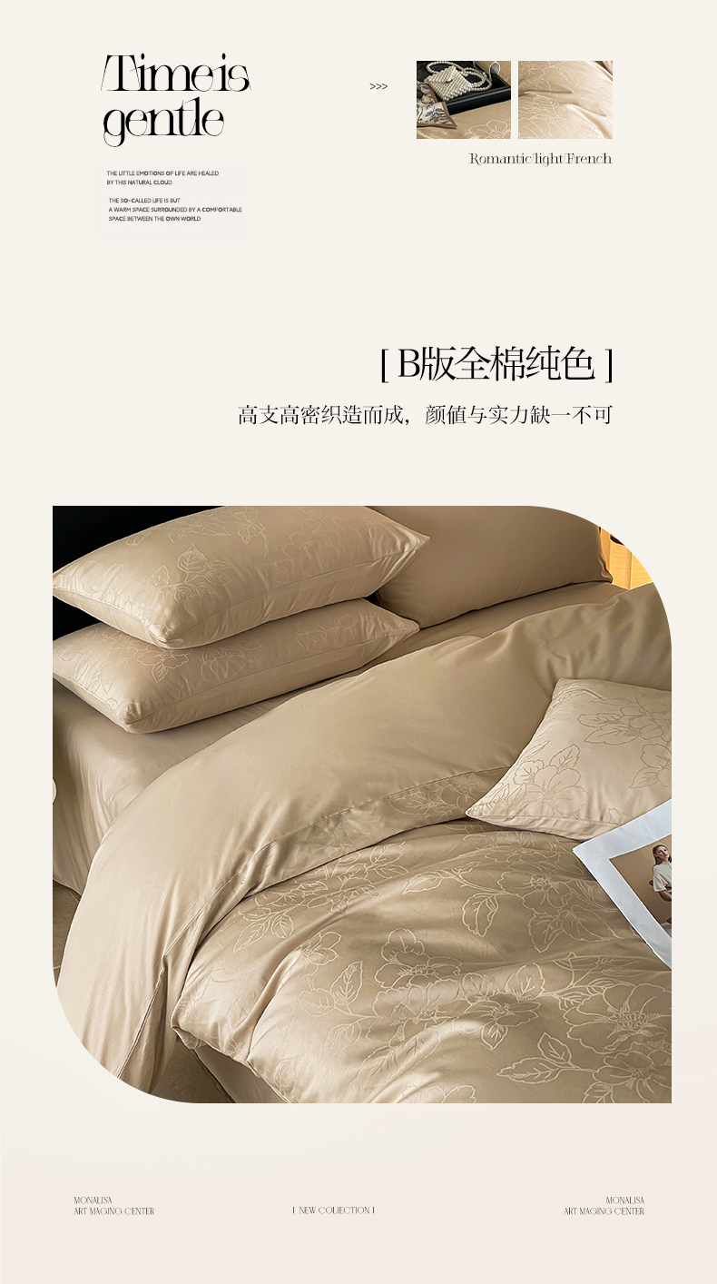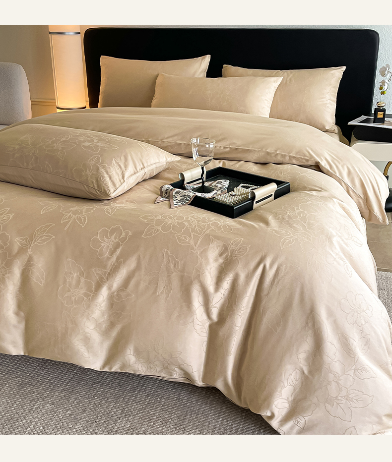 三朵家纺 2024新款全棉贡缎大提花四件套系列 倚花梦米驼