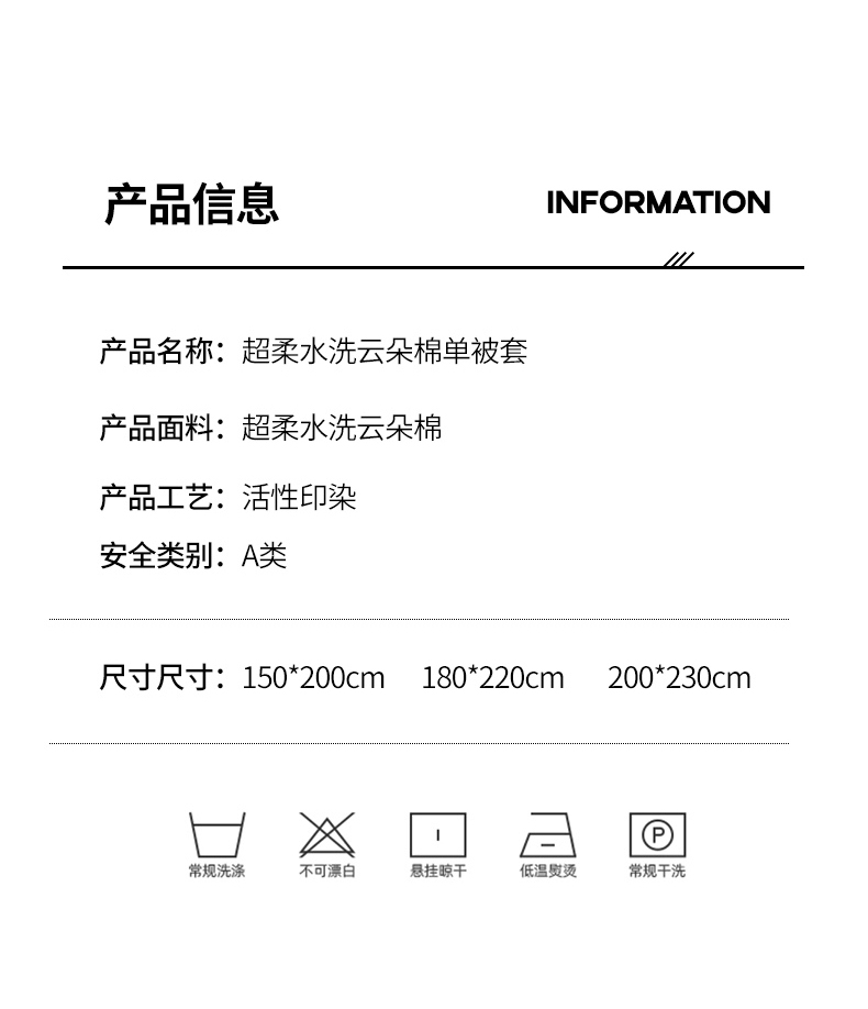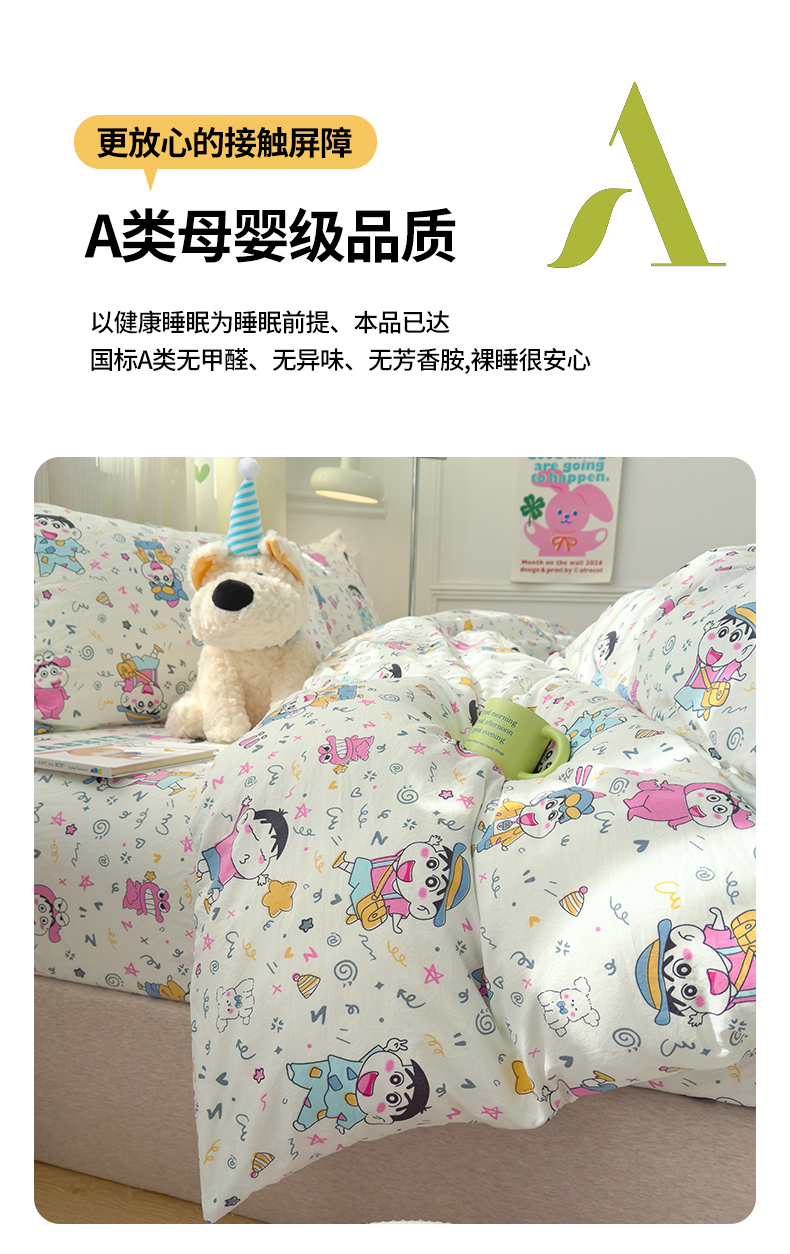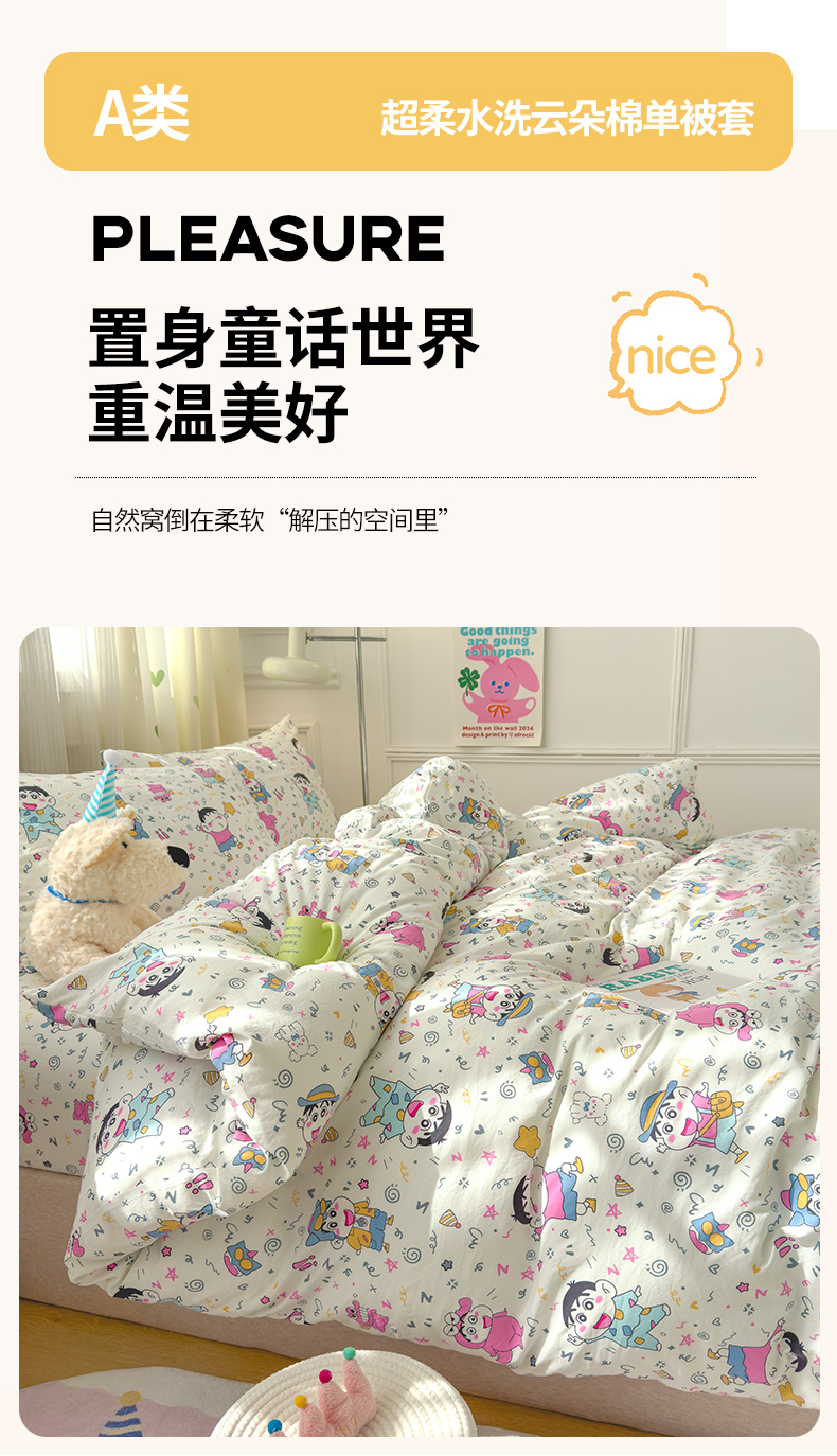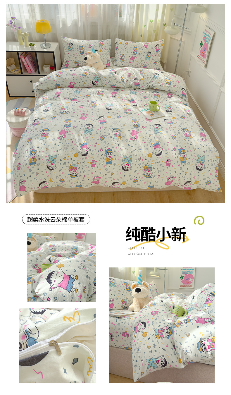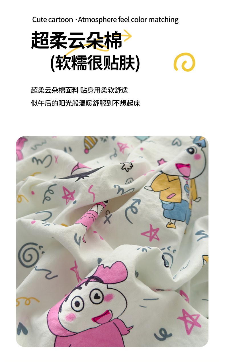 商品名称:宏源家纺 2024新款A类高克重超柔水洗云朵棉单被套 纯酷小新