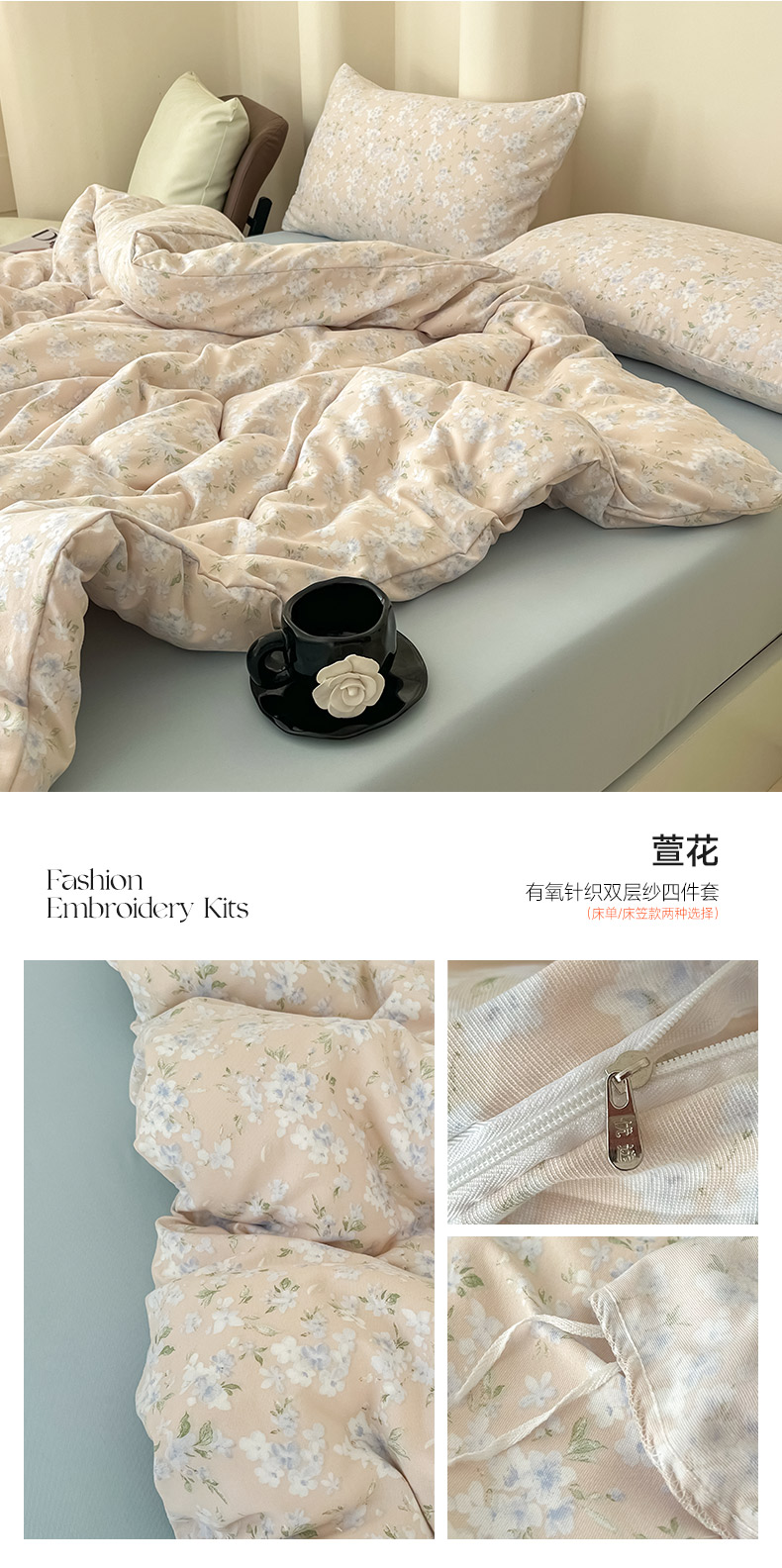 当前位置: 91家纺网 > 商品网购 > 床品套件 > 四件套 > 双层纱四件套 > 优选良品 2025针织棉双层纱四件套小碎花被套床单床笠款学生三件套新款直播爆款(第一批)萱花
