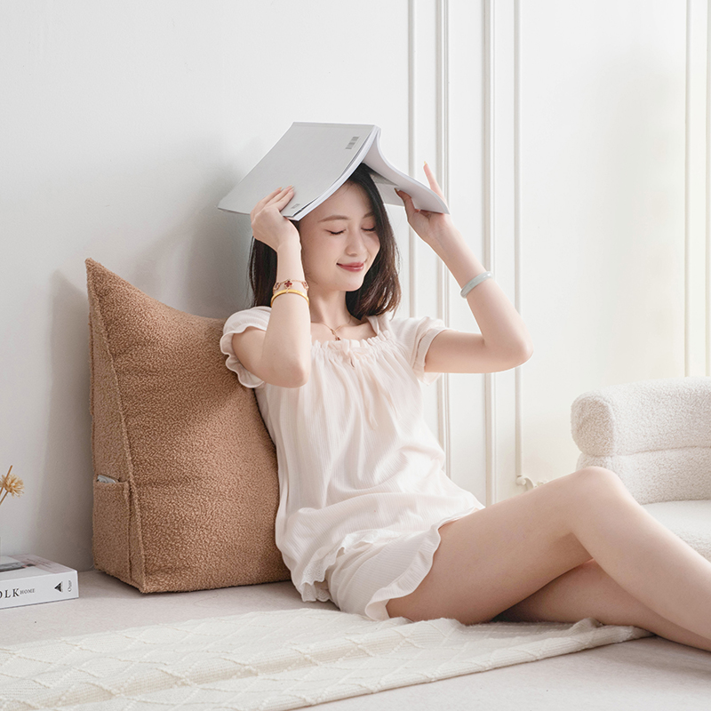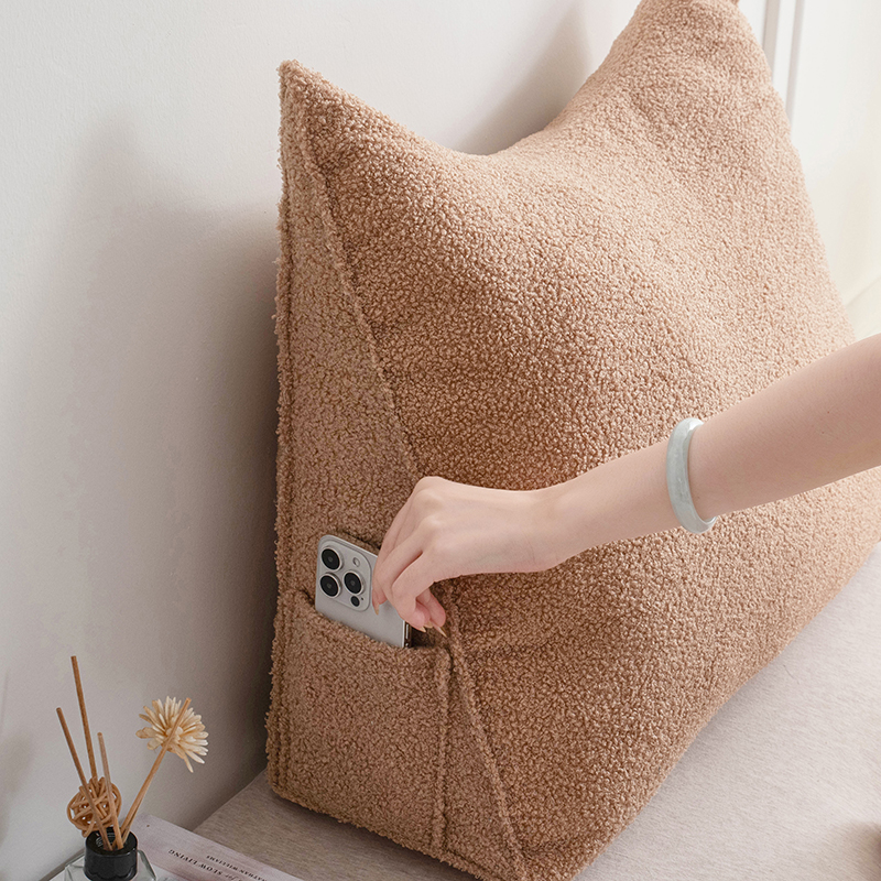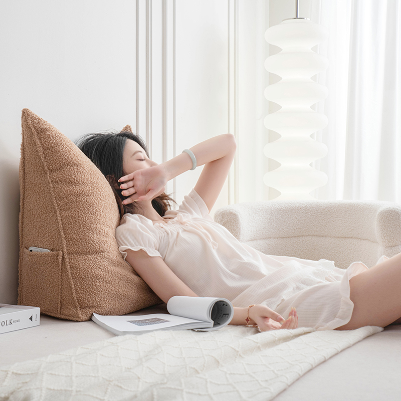 (总)一兰家纺 2024新款泰迪绒三角靠垫床头大靠背腰靠沙发靠背可拆洗-楠妮系列,楠妮-冰霉粉,楠妮-琥珀棕,楠妮-芥末黄,楠妮-咖啡,楠妮-破境白,楠妮-浅系灰,楠妮-蔚蓝