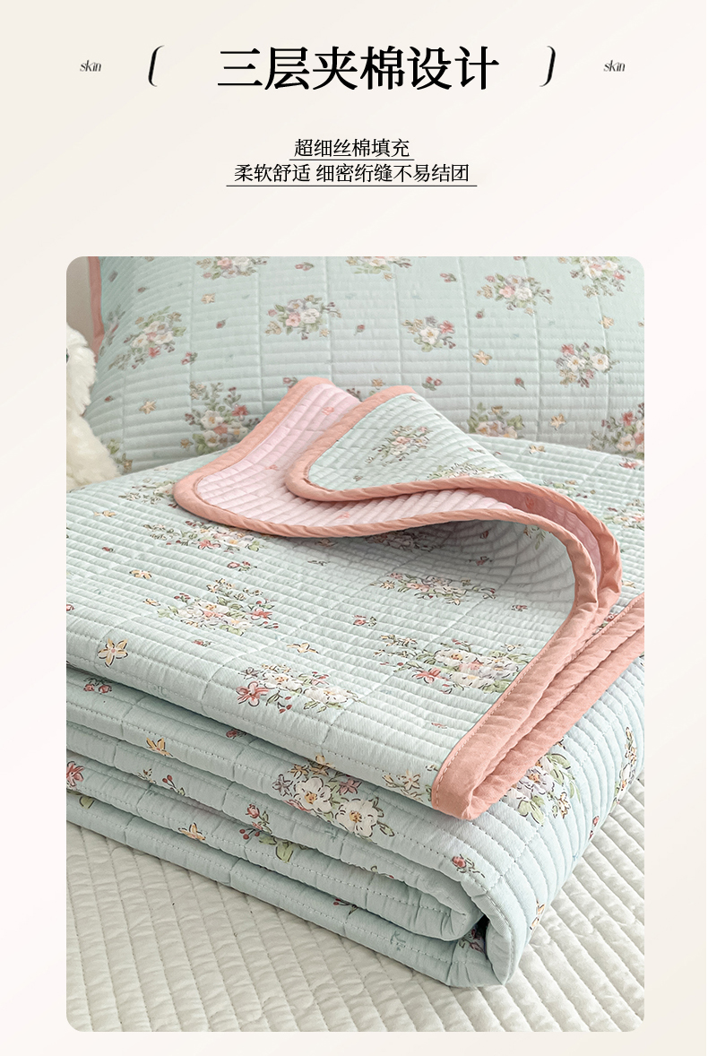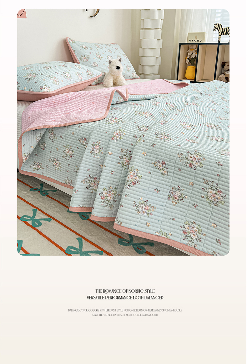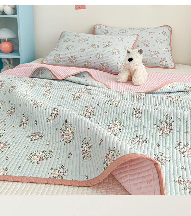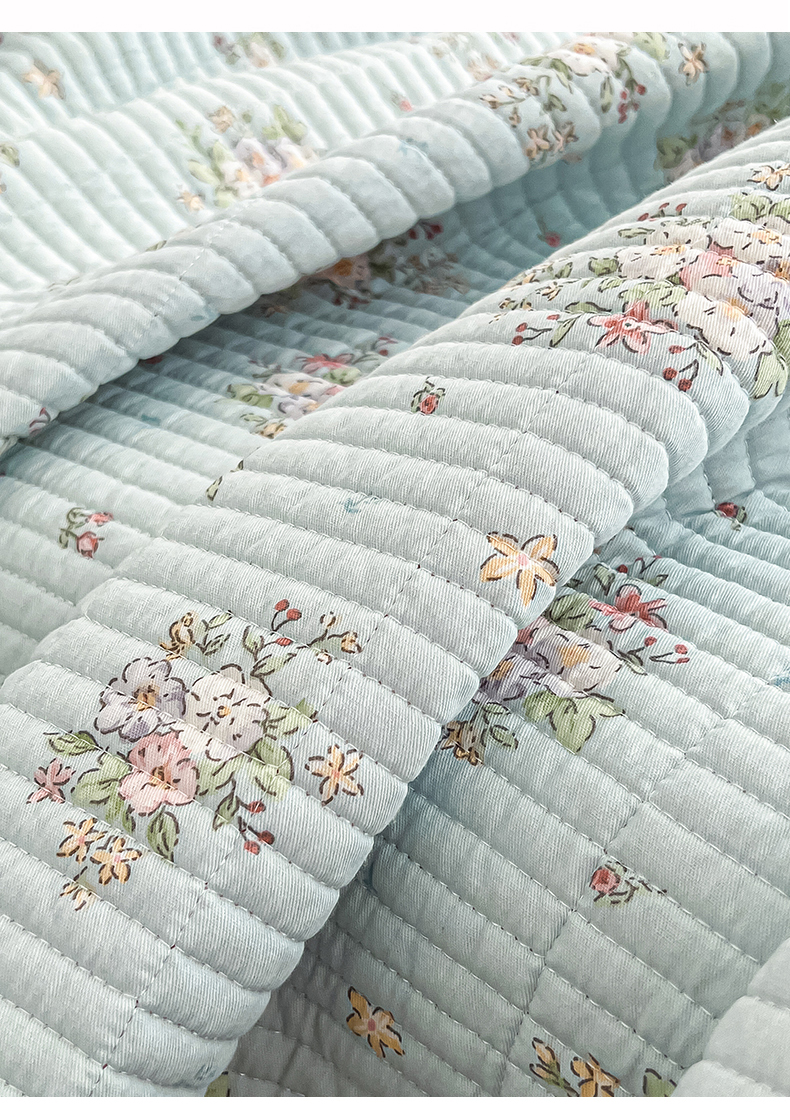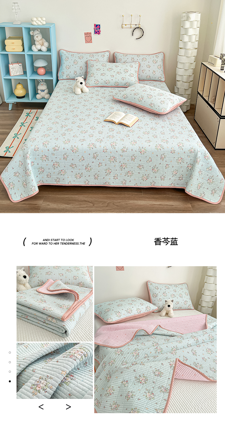 茉夕家纺 2025新款跑量款双面纯棉印花水洗床盖 香芩蓝