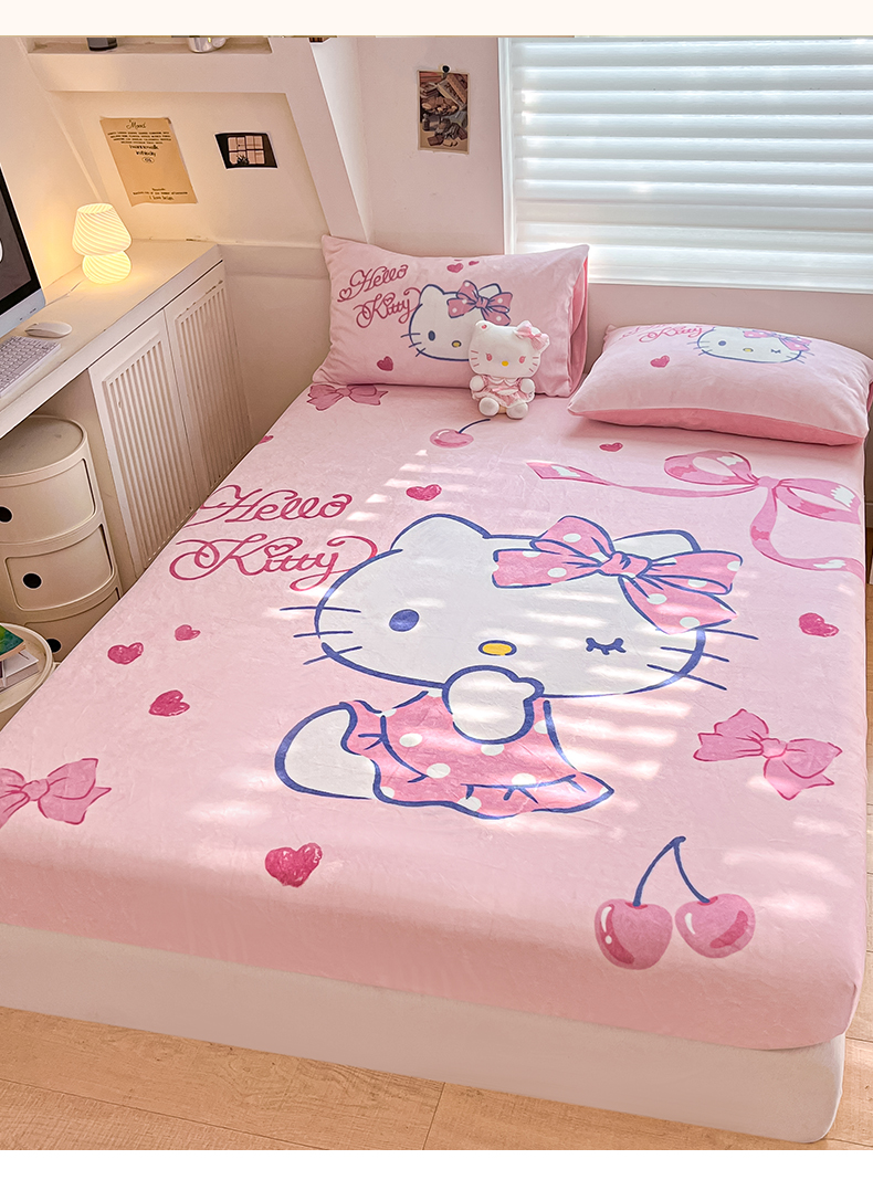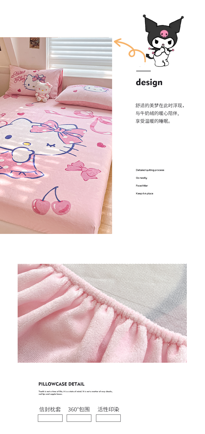 (买家秀爆款不断货)A类母婴级库洛米大阪卡通牛奶绒床笠珊瑚绒床笠雪花绒床笠牛奶绒床罩珊瑚绒床罩床垫套 绒-D爱心蝴蝶kt