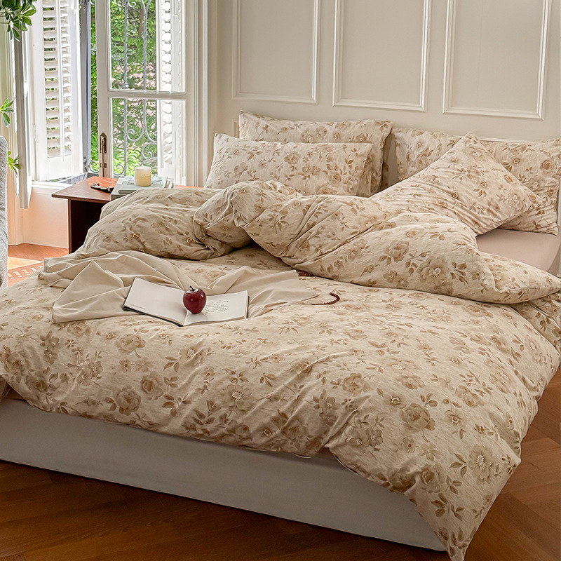 (总)良品汇馆 【天竺棉田园碎花卡通四件套】日式无印印花针织四件套良品天竺棉四件套田园碎花卡通床品套件