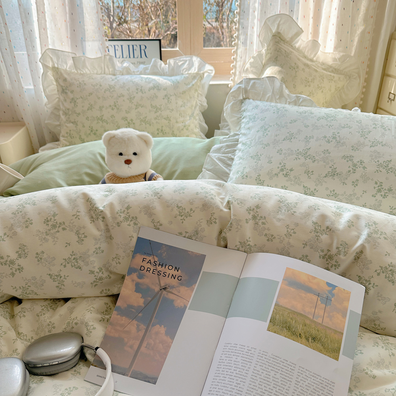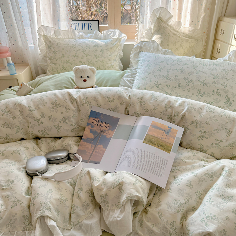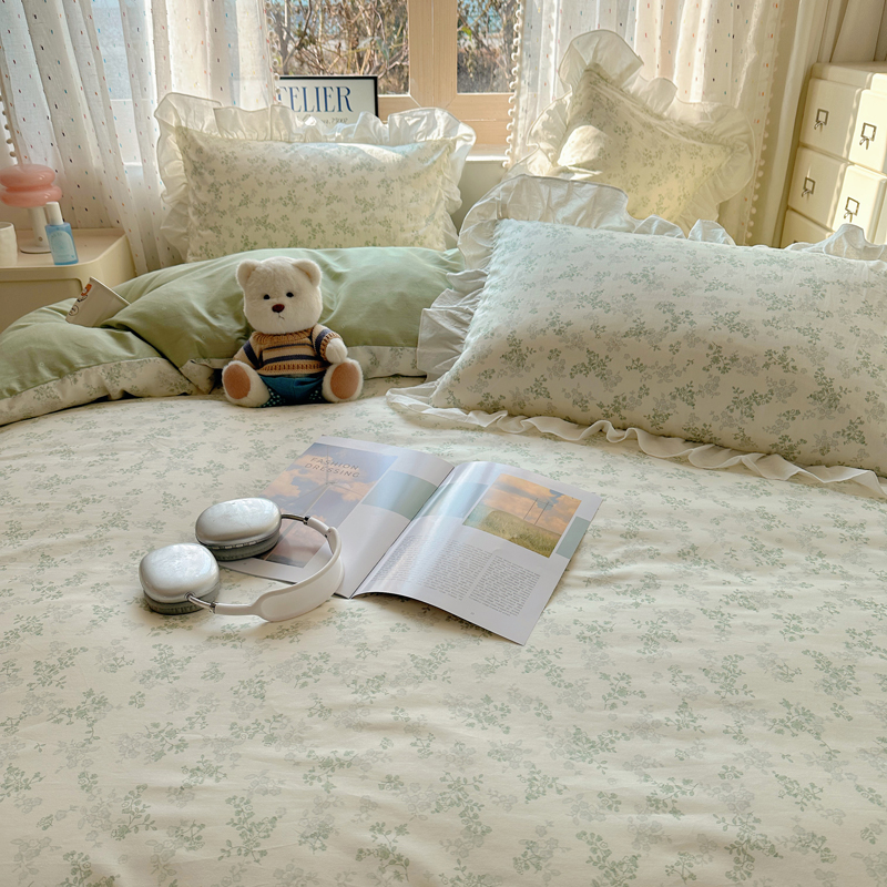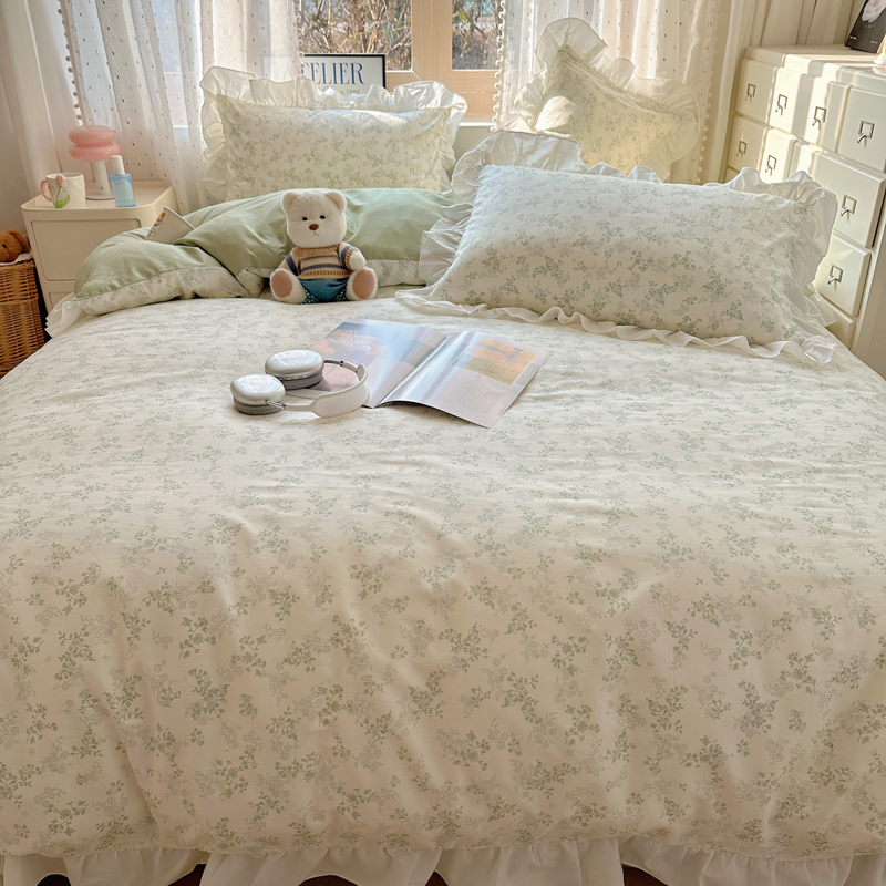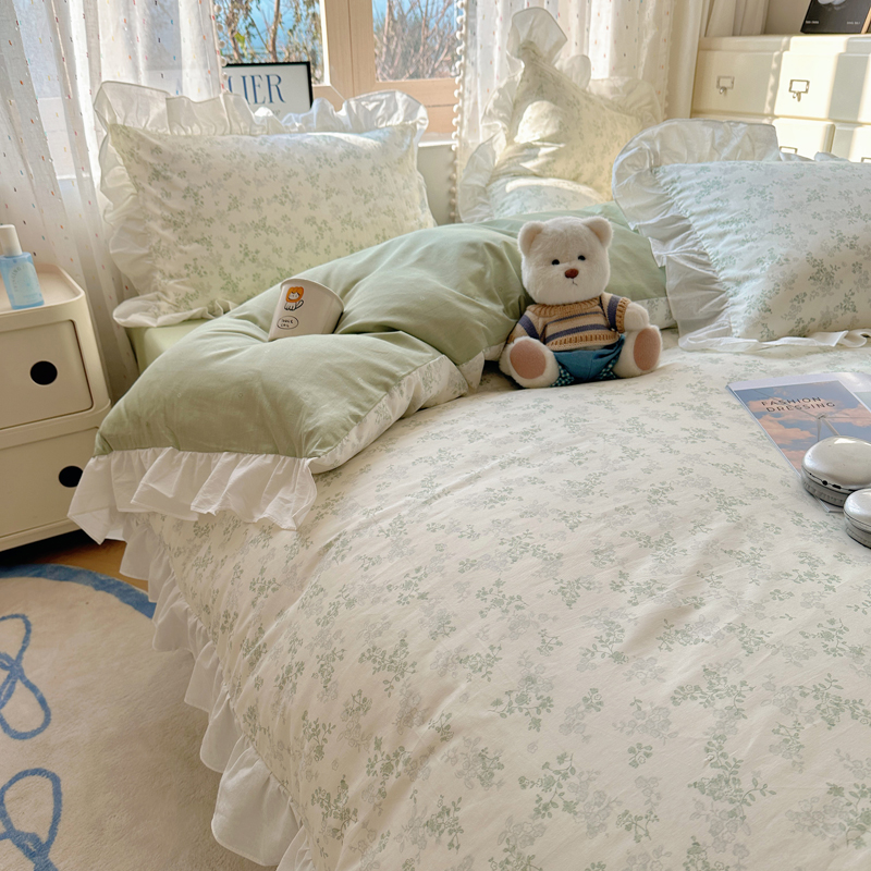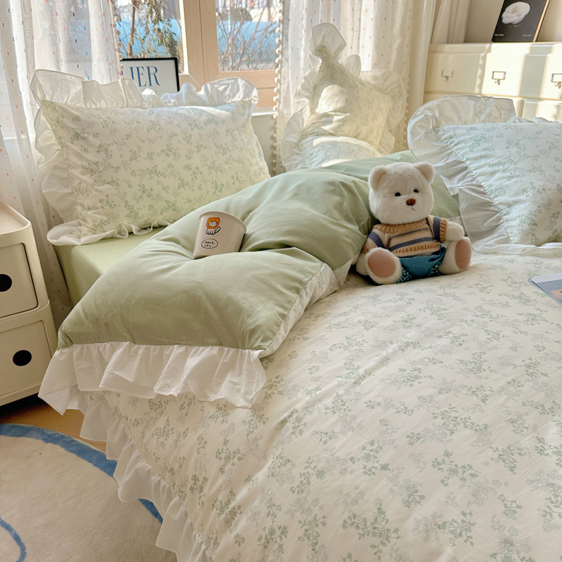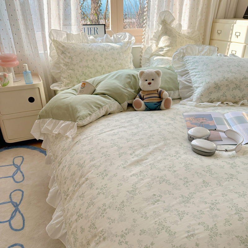 2025春夏新款全棉纯棉碎花花边13372四件套 春风里绿