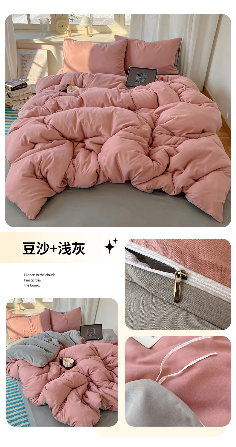 商品名称:芷凡家纺 2025新款亲肤棉纯色双拼四件套 豆沙+浅灰