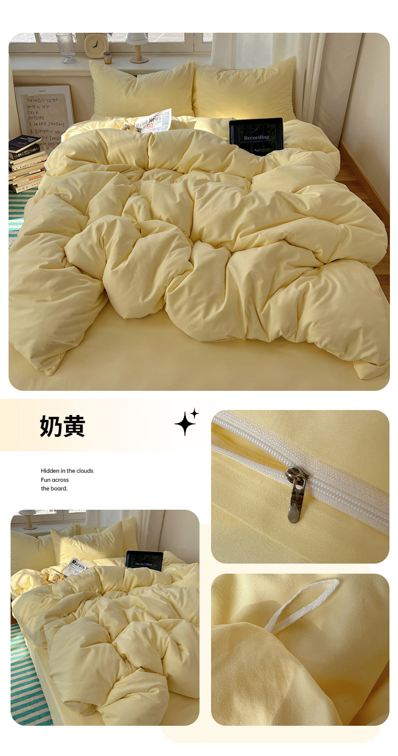 商品名称:芷凡家纺 2025新款亲肤棉纯色双拼四件套 奶黄