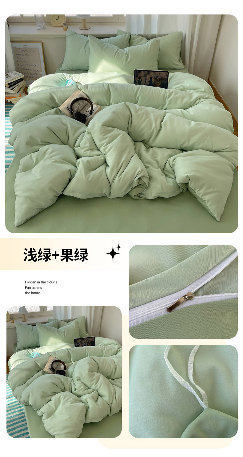 商品名称:芷凡家纺 2025新款亲肤棉纯色双拼四件套 浅绿+果绿