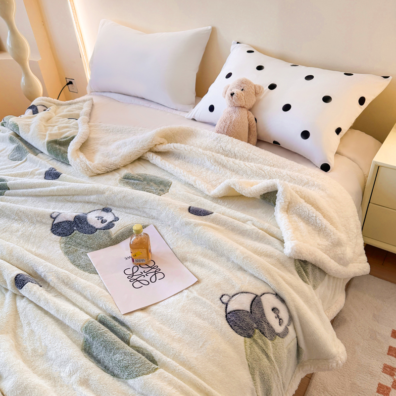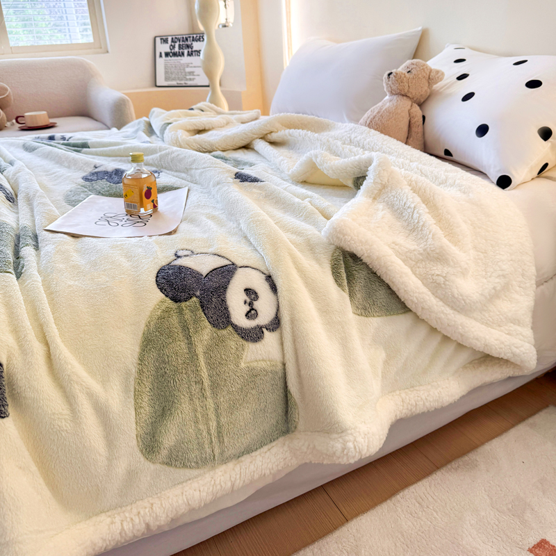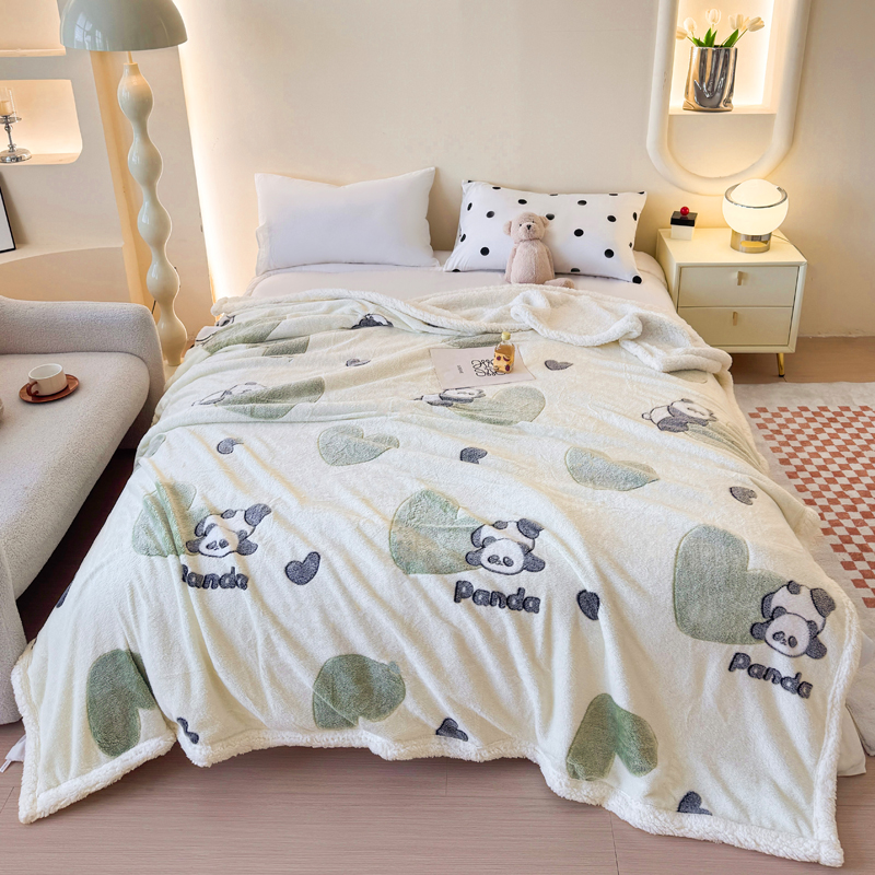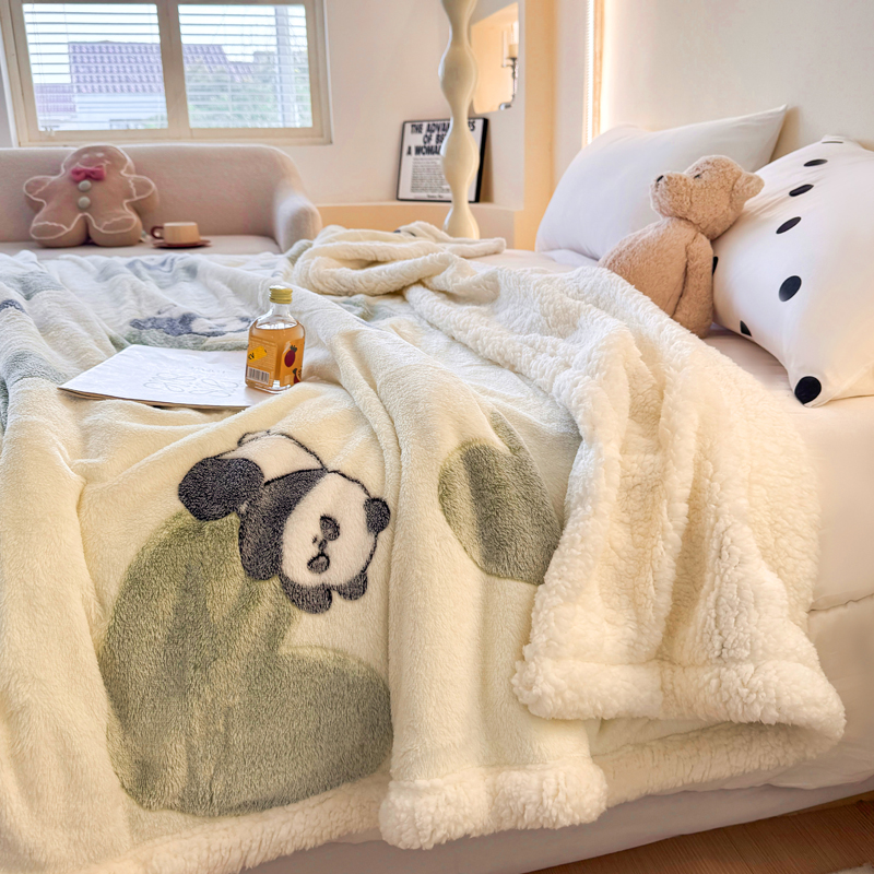 恋佳居 2025新款羊羔绒包边雪花绒小清新毛毯 爱心熊猫