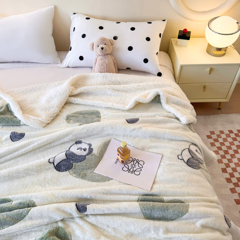 商品名称:恋佳居 2025新款羊羔绒包边雪花绒小清新毛毯 爱心熊猫