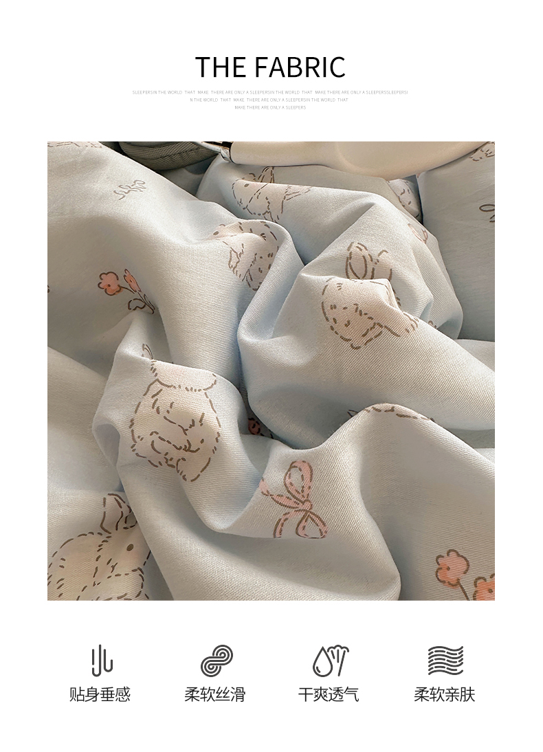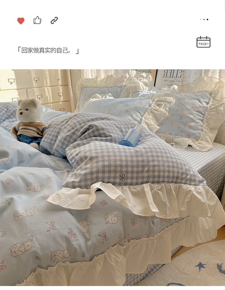 瑞莱 2025新款全棉韩版花边印花四件套 韩版花仙兔