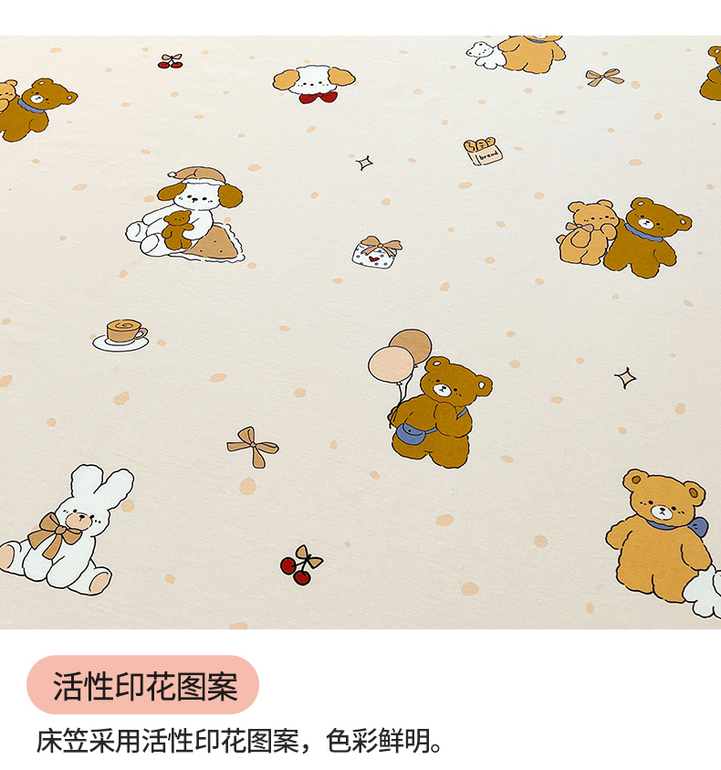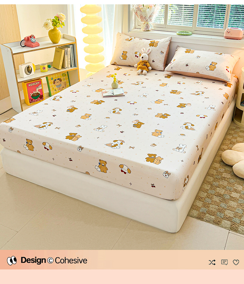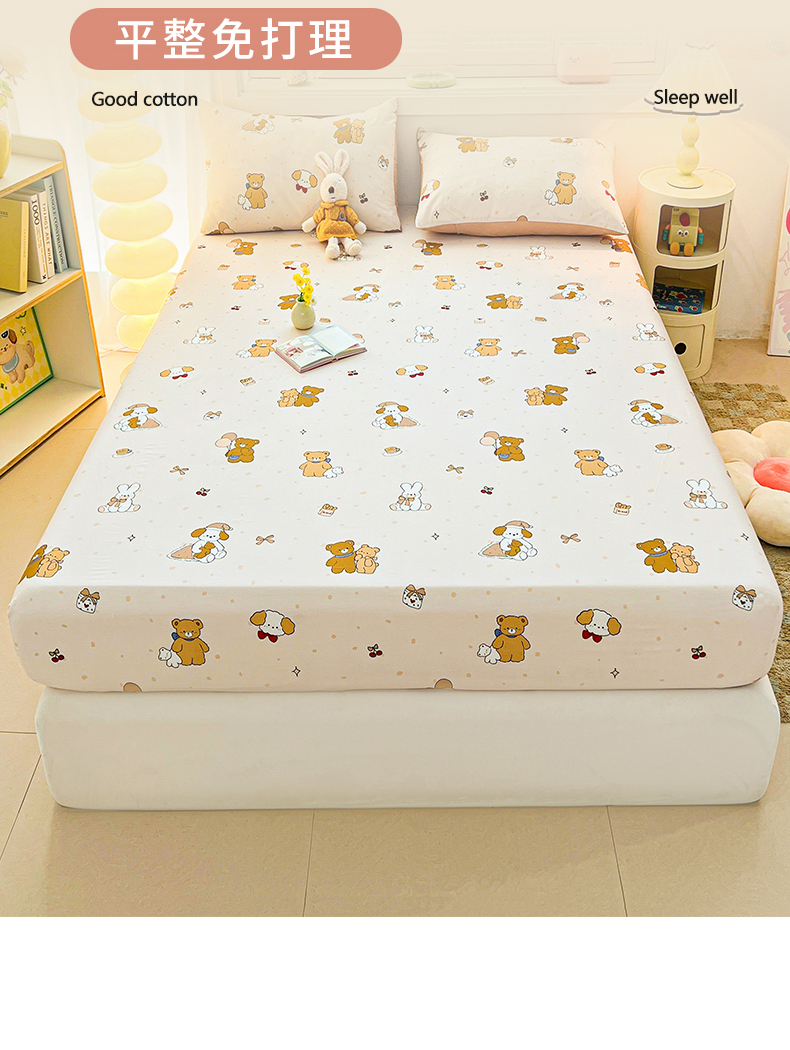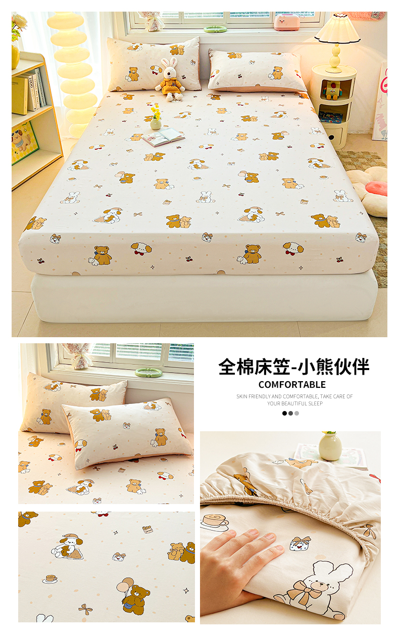• 91家纺网 家纺一手货源 找家纺 雯豆2025春夏新品全棉床笠三件套学生成人印花纯棉床罩 全棉床笠-小熊伙伴