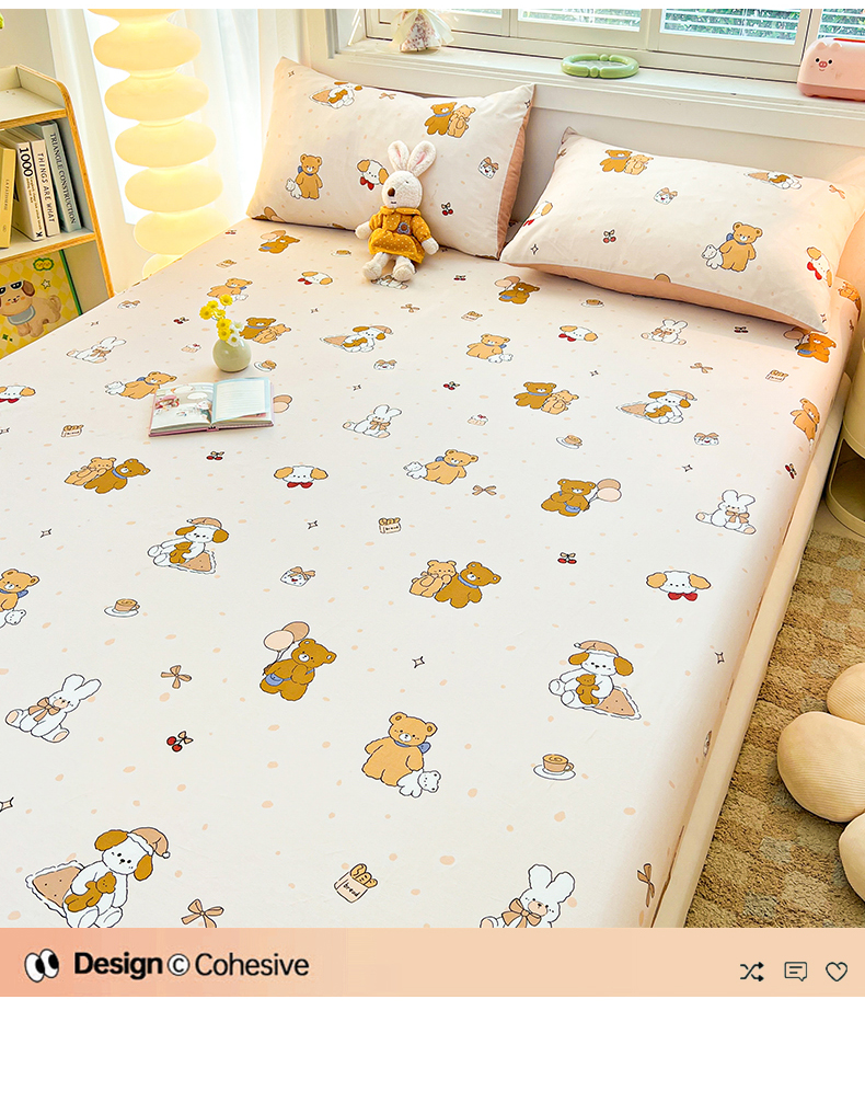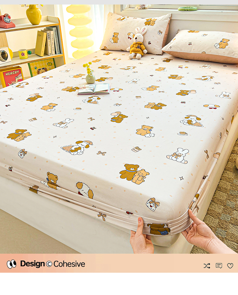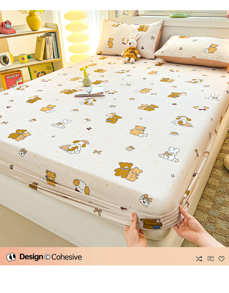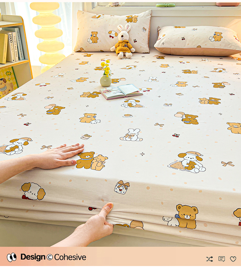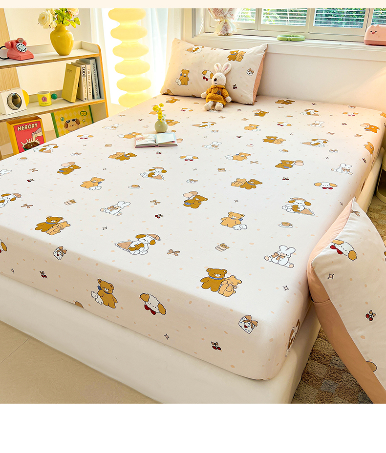 • 91家纺网 家纺一手货源 找家纺 雯豆2025春夏新品全棉床笠三件套学生成人印花纯棉床罩 全棉床笠-小熊伙伴