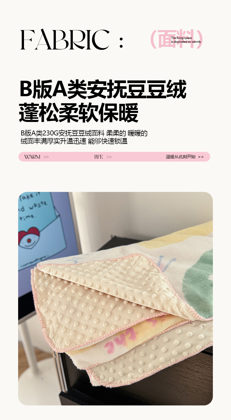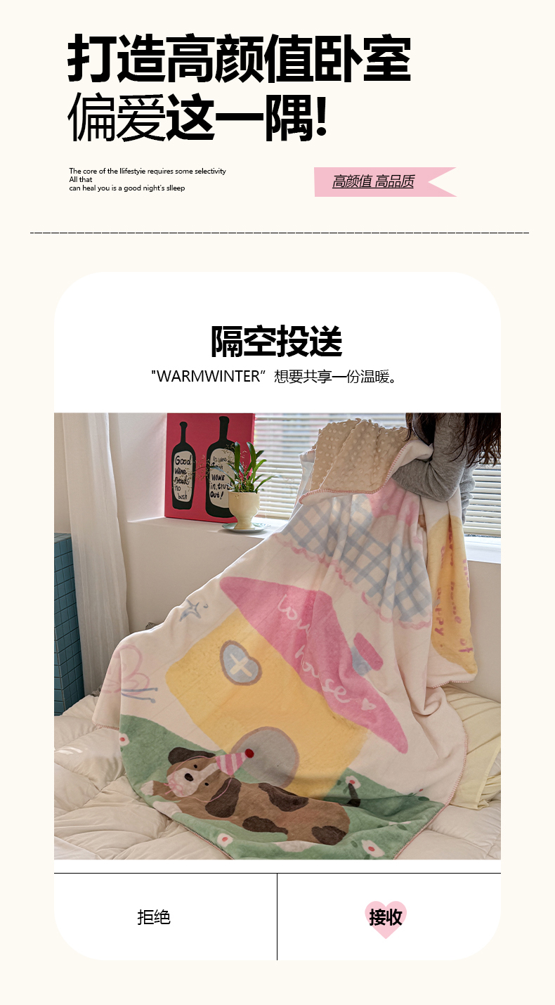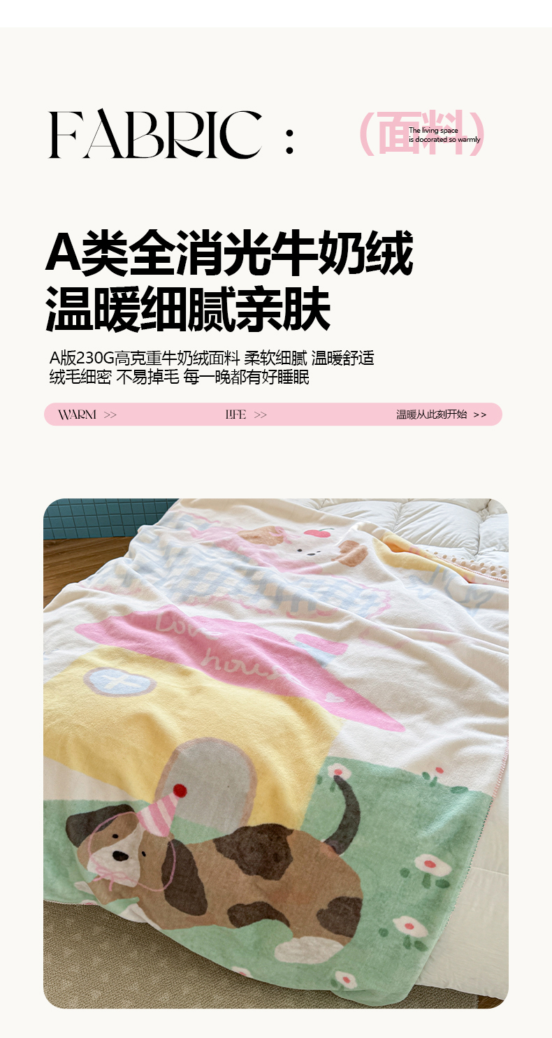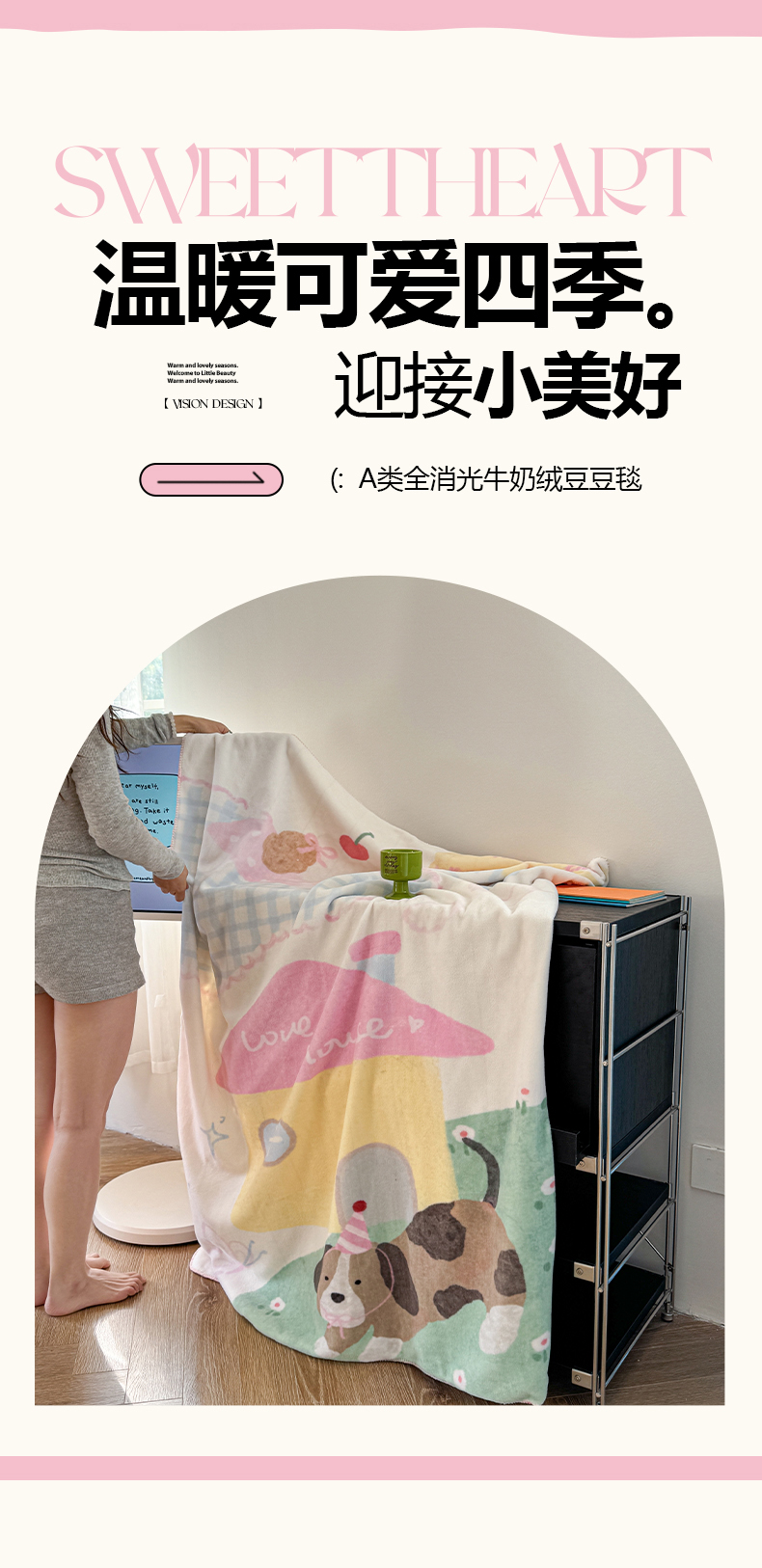 暖生活 2025新款全消光牛奶绒豆豆毯毛毯 爱的小屋