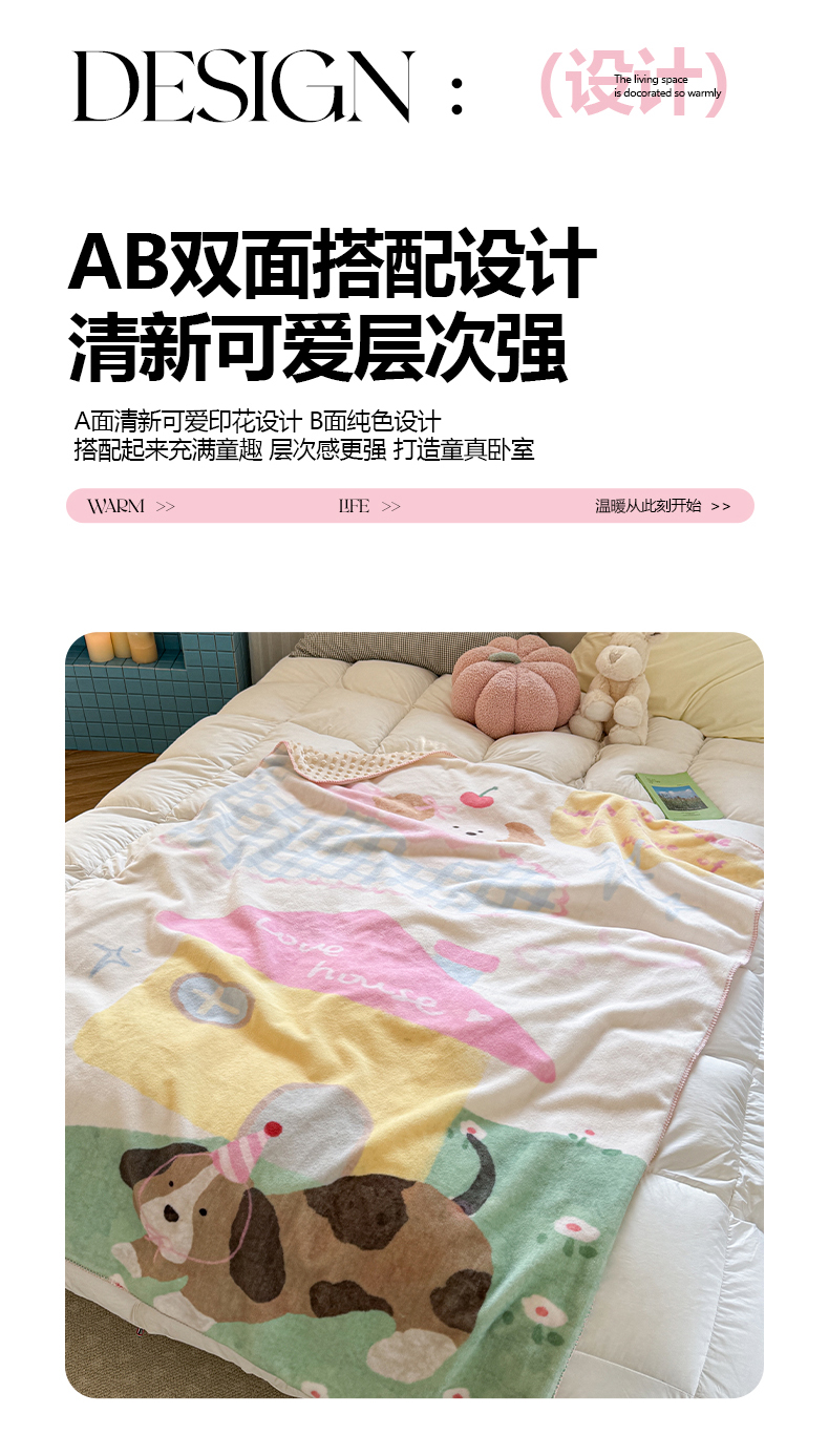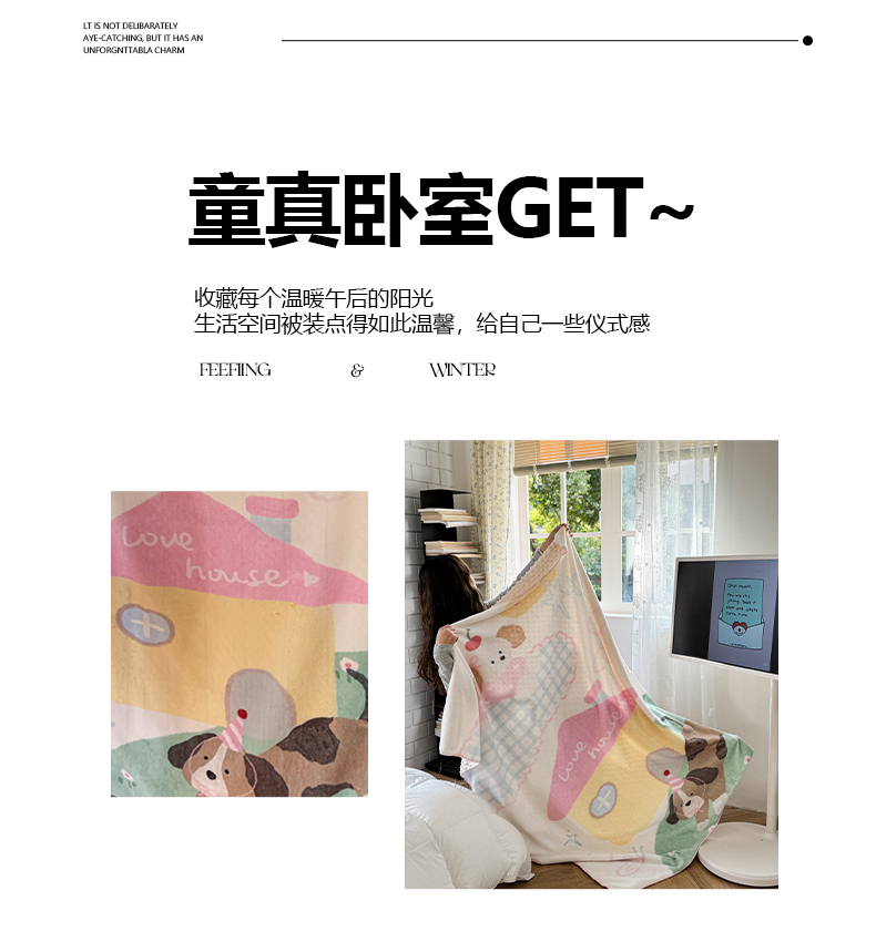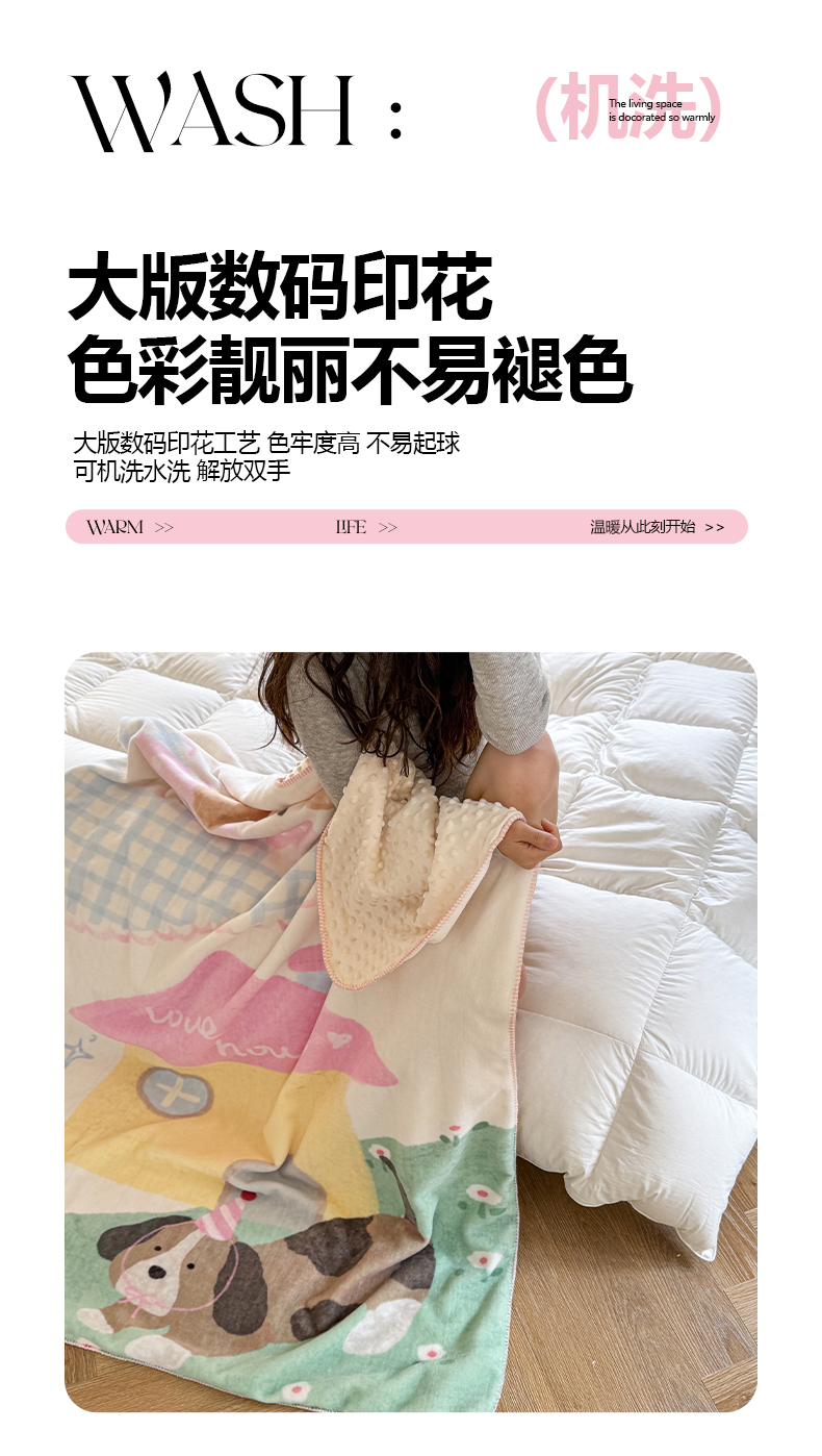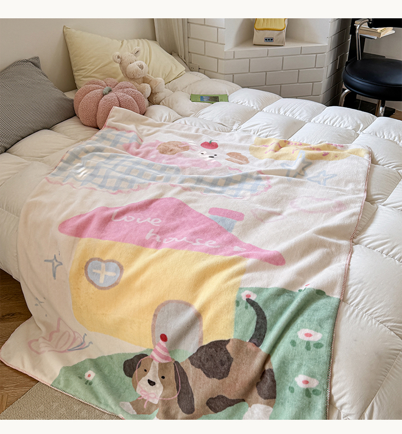 暖生活 2025新款全消光牛奶绒豆豆毯毛毯 爱的小屋