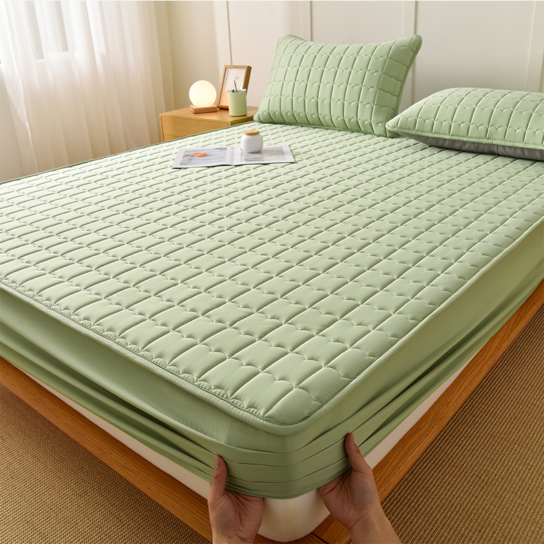 • 91家纺网 家纺一手货源 找家纺 布卢姆床垫 2025新款A类水洗棉大豆夹棉床笠 华夫格-豆绿