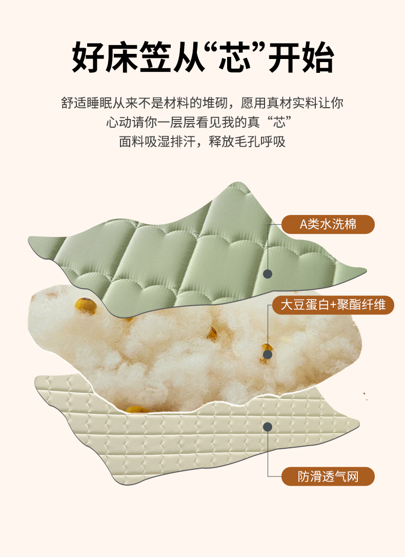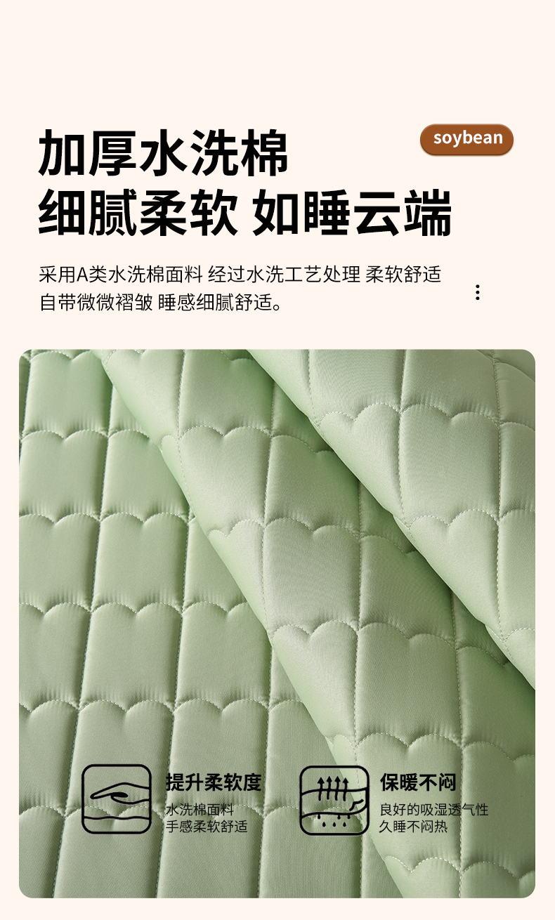 当前位置: 91家纺网 > 商品网购 > 床上用品 > 床笠 > 布卢姆床垫 2025新款A类水洗棉大豆夹棉床笠 华夫格-豆绿