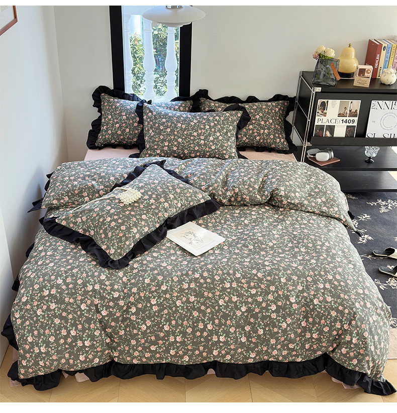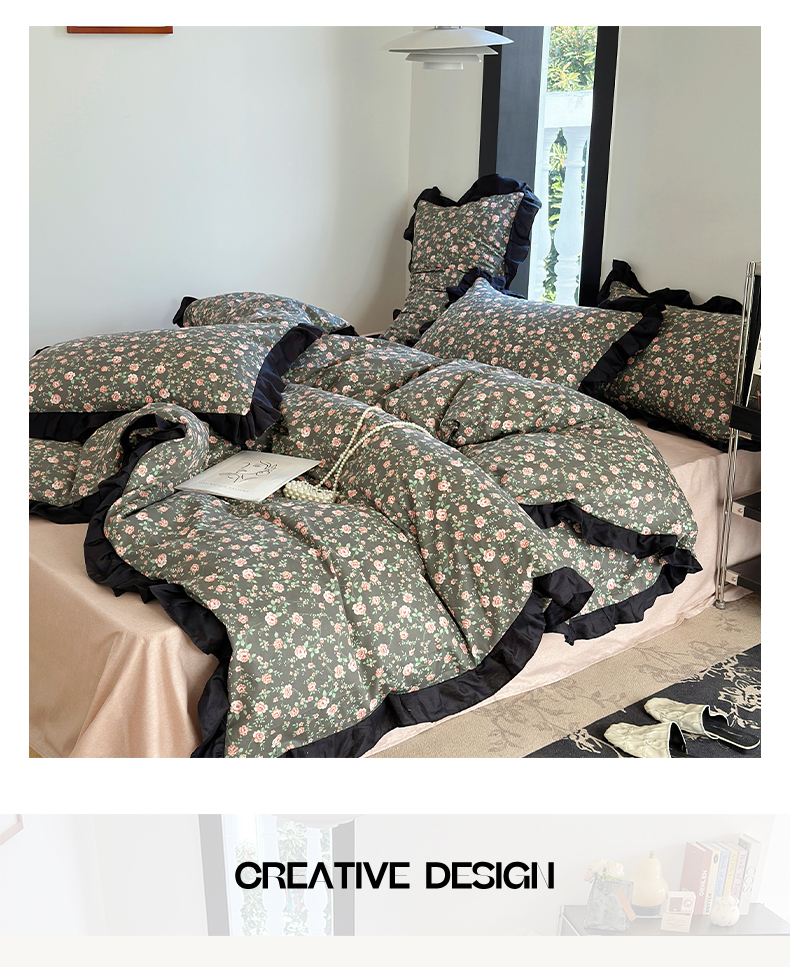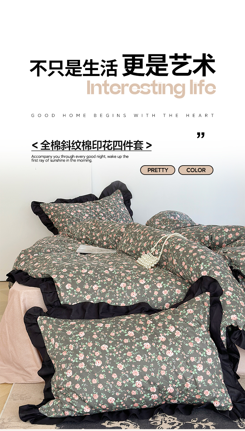 澳萝拉 2025新款全棉斜纹花边印花四件套 海瑟薇