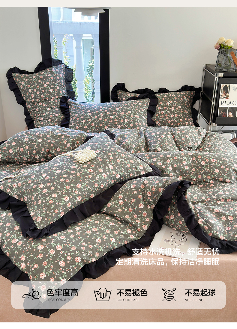 商品名称:澳萝拉 2025新款全棉斜纹花边印花四件套 海瑟薇