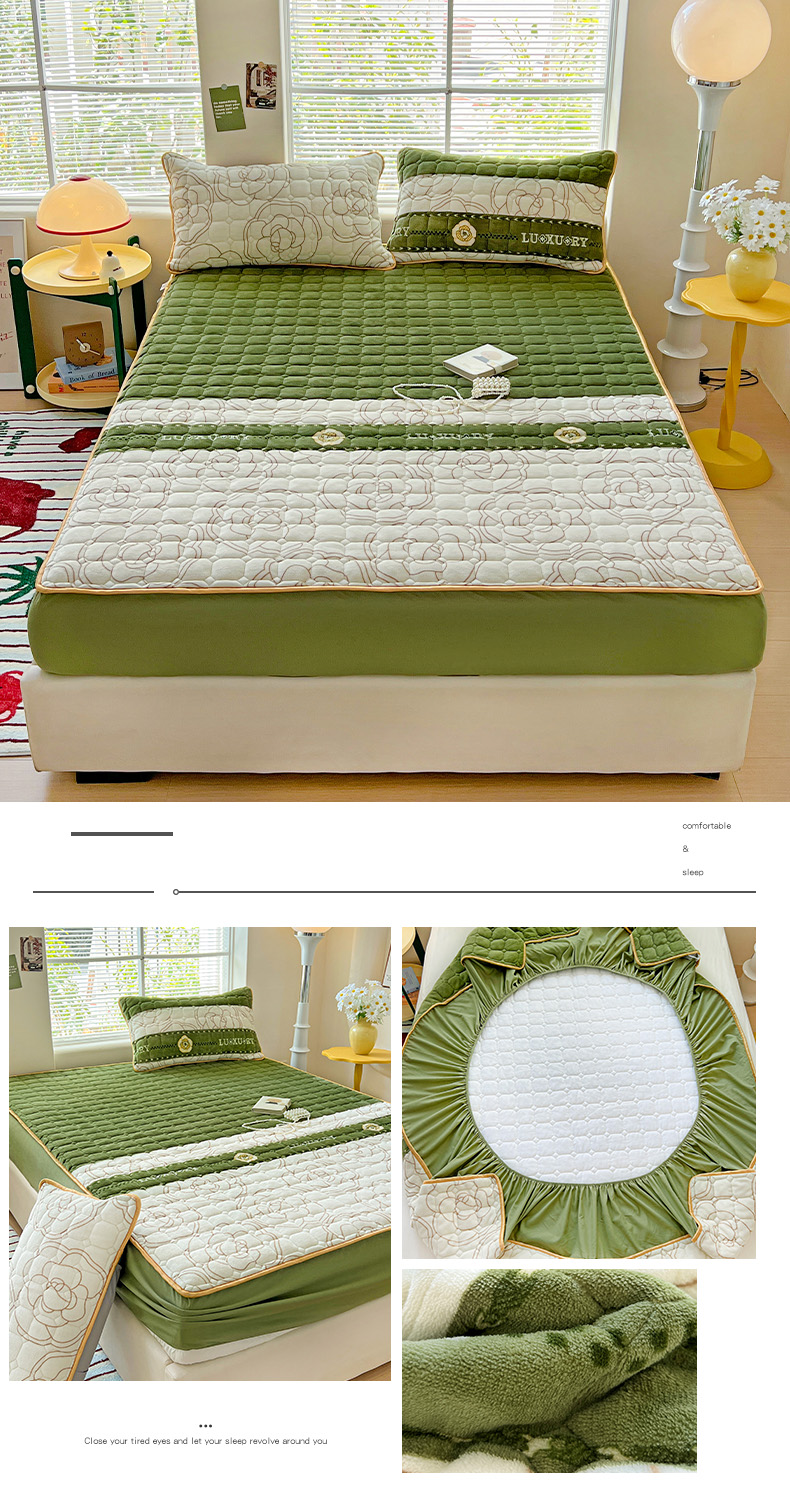 帛洵 2025新款舒适亲肤高克重牛奶绒夹棉床笠 郁金香
