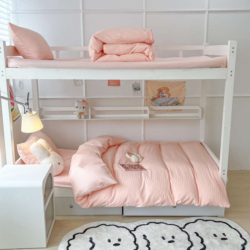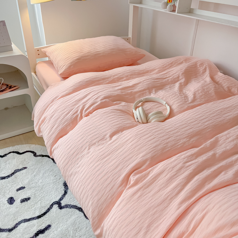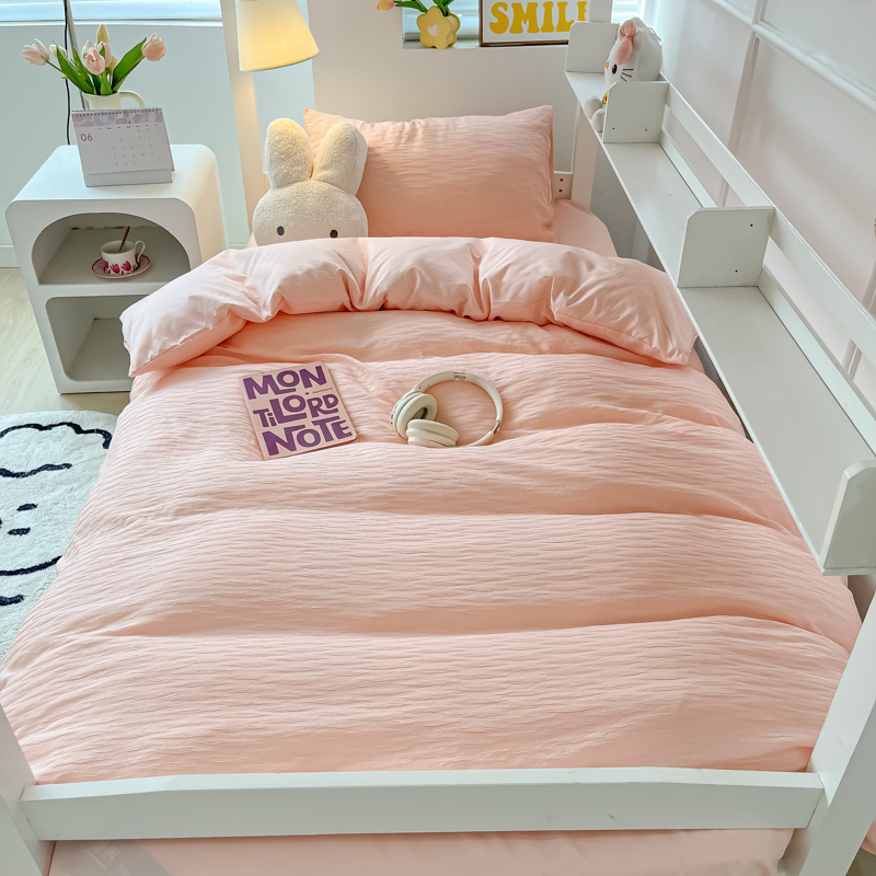 悦织湾2025新款水洗棉泡泡纱系列三件套学生宿舍单人三件套轻奢时尚床上用品四件套 泡泡纱-纯粉