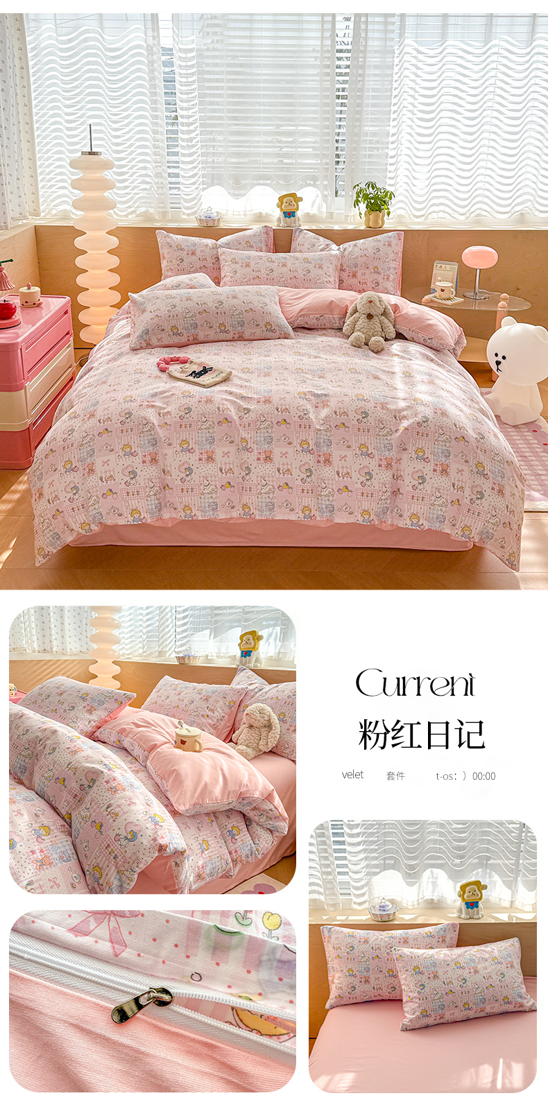 红嘴企鹅 2025新款纯棉印花系列四件套【含买家秀】 粉红日记