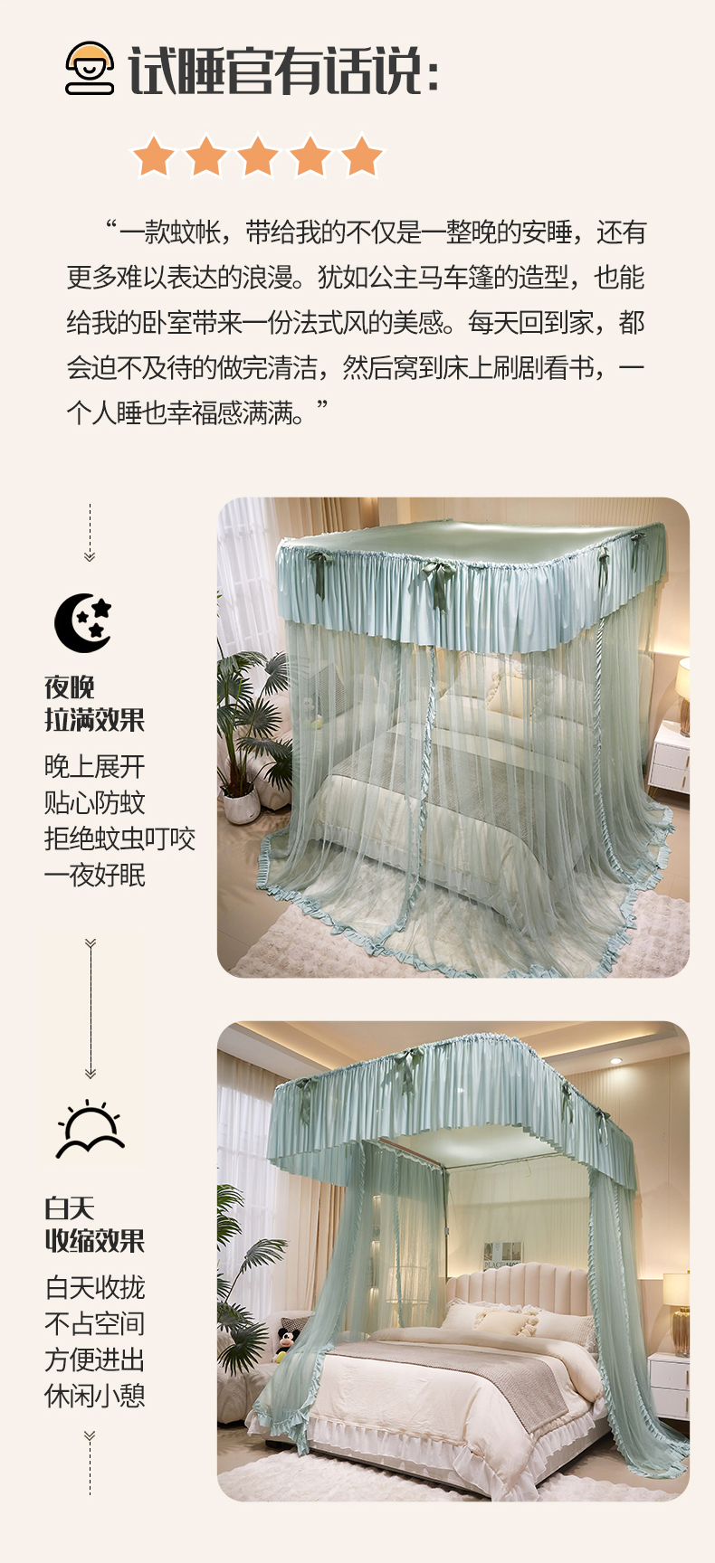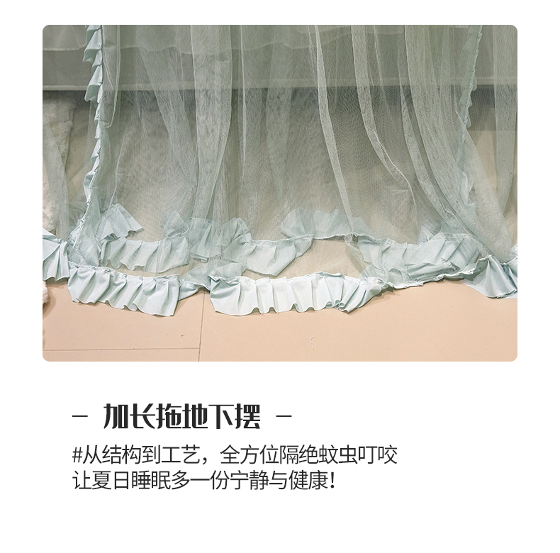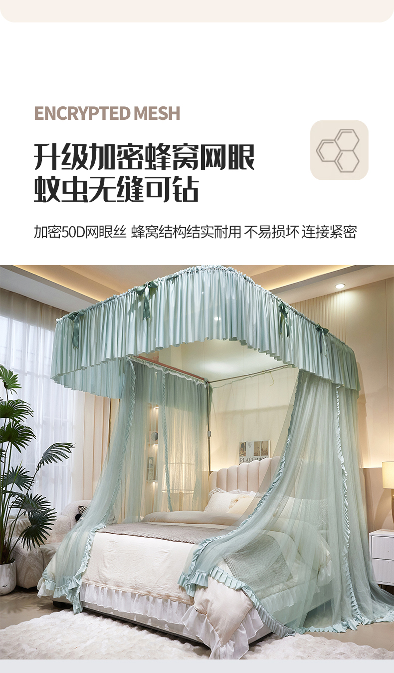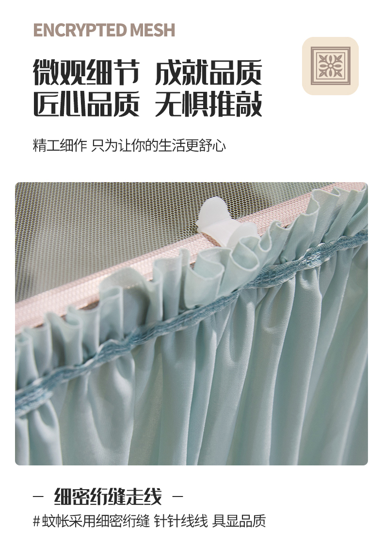 (总)夏彩 2025新款蕾丝U型防摔坐床蚊帐-88630,绿雅灰,藕玉色,香槟色