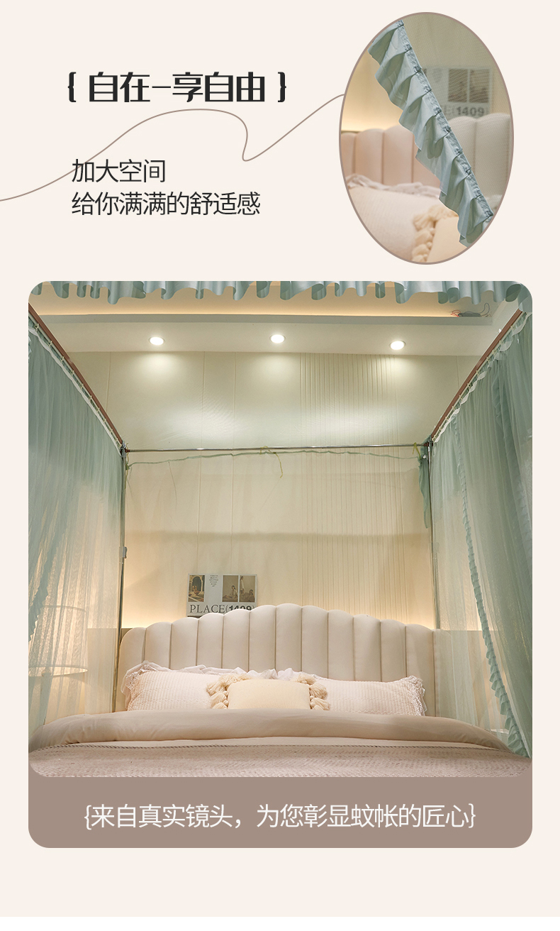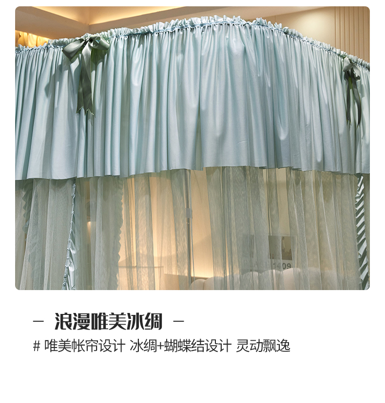 (总)夏彩 2025新款浪漫唯美T+U床笠式坐床外穿防摔蚊帐-88610,886610冰海蓝,886610极光白,886610浅粉玉,886610浅水蓝,886610蔷薇粉,886610杏仁黄,886610雅士灰