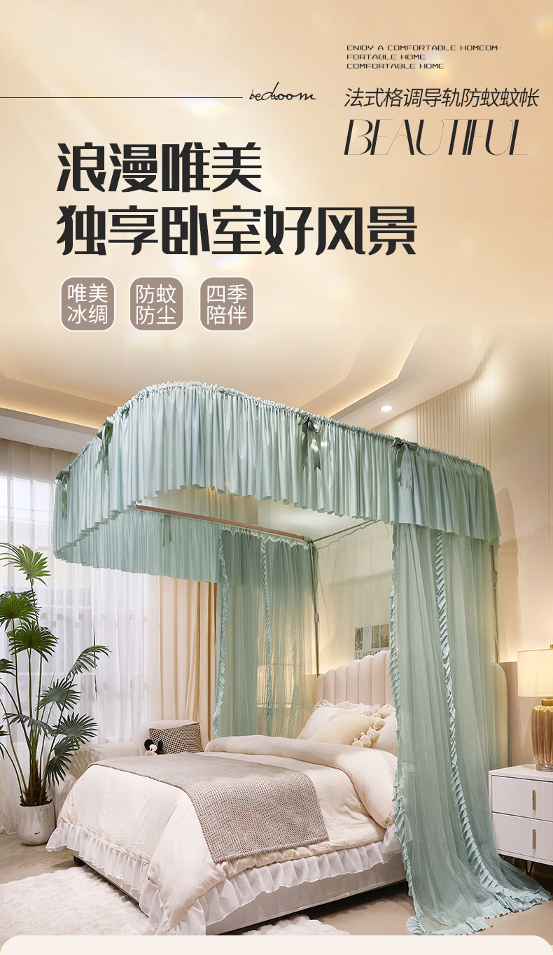 商品名称:(总)夏彩 2025新款加柔加密铝合金接口高度可调节导轨蚊帐88615